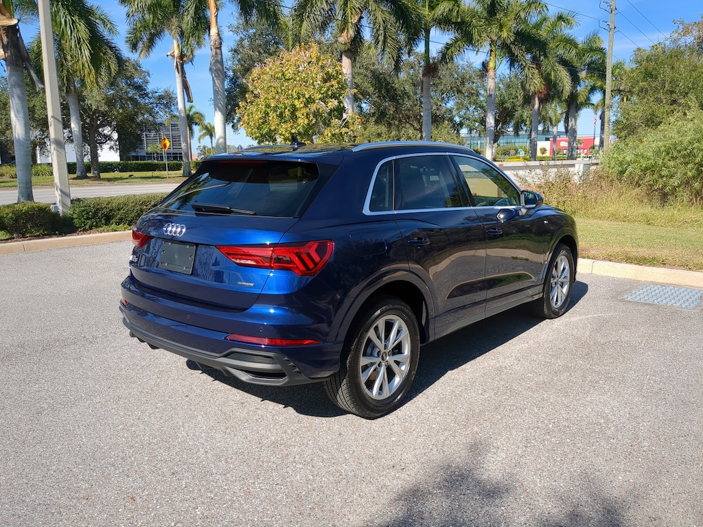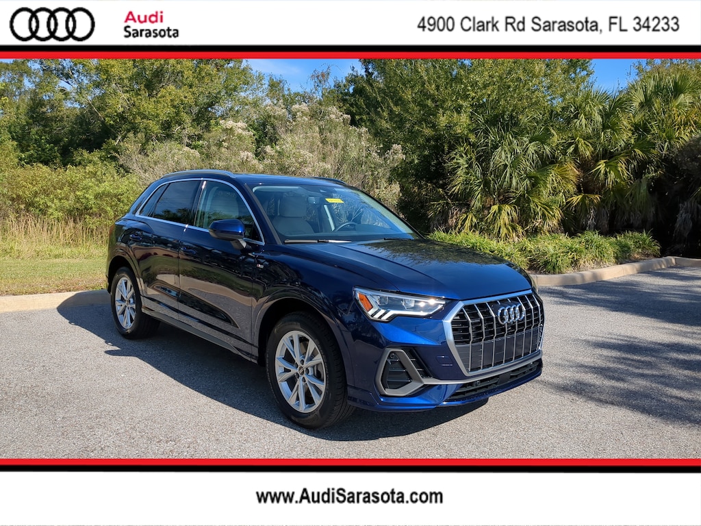 Pricing excludes tax, tag, title and pre-delivery service fee of $999 and private tag agency fee of $24.40. *See below for details..Audi Sarasota Courtesy Vehicle with Only 4,864 Miles..Audi Certified!..This All Wheel Drive Q3 Premium Plus S Line Quattro includes Audi Side Assist Blind Spot Warning..Lane Departure Warning..Rear Cross Traffic Alert..Surround-View Camera..Adaptive Cruise Assist with Lane Guidance..Audi Pre Sense Front (Forward Collision Warning and Avoidance Assist)..Audi Pre Sense Basic..Audi Parking System Plus..LED Interior Lighting Plus Package..SONOS Premium Sound System with 3D Sound..Full LED Headlamps..High-Beam Assist..Apple CarPlay/Android Auto..Panoramic Moonroof..10.25" Digital Display..Alarm System with Motion Sensor..Audi Connect..3- Zone Climate Control..10.1" Touchscreen..Bluetooth for Phone & Audio..Wireless Phone Charging Pad..USB Ports..Power Tailgate..18" Alloy Wheels..Power Adjustable, Heated Leather Sport Seats..Satellite Radio..2.0L 228 HP 4 Cylinder Turbo..8 Speed Automatic Transmission..Audi Drive Select..Quattro AWD System..All power equipment and much more..All pre-owned cars regardless of make and model are driven and evaluated by our highly qualified service personnel. Call Our Sales Team Now at 941-922-0000 for More Info, a Test Drive Appointment or to have a Custom Video Sent to you on this Vehicle. Fast Out Of State Shipping Available..Over 125 components are inspected by Audi trained technicians to ensure each Audi Certified pre-owned vehicle is in optimal condition. Only after this comprehensive dealer inspection are we confident in backing the vehicle with our Audi Certified pre-owned Limited Warranty, which is more than a seal of approval, it's a badge of honor. When the Audi New Vehicle Limited Warranty expires, the Audi Certified pre-owned Limited Warranty becomes effective and provides coverage for a period of one year or 20,000 miles, whichever occurs first. (See dealer for details)..What the reviews say about this car...The 2025 Audi Q3 is a good choice for a subcompact luxury SUV. A smooth ride and standard all-wheel drive for sure-footedness in poor weather conditions are highlights. Good standard tech, serene cabin experience, high-quality interior materials. The Q3 has a few tricks up its ultra-modern sleeve, with a strong offering of standard features including heated leather seats, a sunroof, and adaptive cruise control. Looking like a Q5 that shrank slightly in the dryer, the Q3 maintains Audi's focus on current technology and superb handling. With the Audi Q3 40 removed from the lineup for 2025, the Q3 S Line 45 carries on with a turbo 2.0-liter four-cylinder kicking out 228 horses and 251 lb-ft. . Audi managed to package a surprisingly spacious interior into the Q3's compact footprint. Combined with the standard panoramic sunroof, leather upholstery and heated front seats, the Q3 finally feels worthy of the four-ring logo. The smallest Audi SUV is a stylistic gateway to the brand. Certain Audi hallmarks distinguish the Q3. The exterior design is understated yet tastefully detailed. Inside, impressive digital displays accompany a similarly contemporary design aesthetic. The back seats are rather roomy given the SUVs exterior dimensions. Certain Audi hallmarks distinguish the Q3. The exterior design is understated yet tastefully detailed. Inside, impressive digital displays accompany a similarly contemporary design aesthetic. The back seats are rather roomy given the SUVs exterior dimensions. The ultra-modern Q3 boasts understated elegance, and it comes with a long list of standard features, top-notch materials and ample tech. The Q3 has an upscale interior design, with quality materials and standard luxury items like leather upholstery, a panoramic sunroof and heated front seats. The interior benefits from a clean and clutter-free design, with modern tech and intuitive controls.