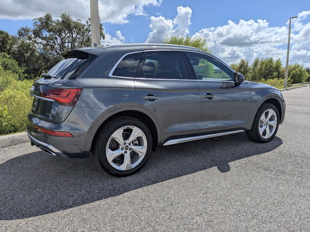 Pricing excludes tax, tag, title and pre-delivery service fee of $999 and private tag agency fee of $24.40. *See below for details..Audi Certified!..Audi Sarasota Courtesy Vehicle with Only 4,778 Miles..Wow this All Wheel Drive Q5 Premium Plus Quattro includes Warm Weather Package with Audi Side Assist Blind Spot System..Lane Departure Warning..Frontal Collision Mitigation..Rear Cross Traffic Alert..Adaptive Cruise Control with Traffic Jam Assist and Audi Active Lane Assist..Front/Rear Parking Sensors..Panoramic Sunroof..12.3" Audi Virtual Cockpit Plus..Apple CarPlay and Android Auto..Surround-View Camera..Traffic Sign Recognition..2.0L Turbocharged 261 HP 4 Cylinder..7 Speed Automatic Transmission..Bang & Olufsen Audio System..MMI Navigation Plus System..Satellite Radio..USB Port..Power Tailgate..Power Adjustable, Heated/Ventilated Leather Seats with Driver Seat Memory..Heated Steering Wheel..20" Alloy Wheels..3-Zone Climate Control..10.1" Touchscreen..Heated Steering Wheel..Bluetooth for Phone & Audio..High-Beam Assist..Quattro AWD System..All power equipment and much more..All pre-owned cars regardless of make and model are driven and evaluated by our highly qualified service personnel. Call Our Sales Team Now at 941-922-0000 for More Info, a Test Drive Appointment or to have a Custom Video Sent to you on this Vehicle. Fast Out Of State Shipping Available..All pre-owned cars regardless of make and model are driven and evaluated by our highly qualified service personnel. Call Our Sales Team Now at 941-923-1700 for More Info, a Test Drive Appointment or to have a Custom Video Sent to you on this Vehicle. Fast Out Of State Shipping Available..Over 125 components are inspected by Audi trained technicians to ensure each Audi Certified pre-owned vehicle is in optimal condition. Only after this comprehensive dealer inspection are we confident in backing the vehicle with our Audi Certified pre-owned Limited Warranty, which is more than a seal of approval, it's a badge of honor. When the Audi New Vehicle Limited Warranty expires, the Audi Certified pre-owned Limited Warranty becomes effective and provides coverage for a period of one year or 20,000 miles, whichever occurs first. (See dealer for details)..What the reviews say..Audi's best-selling model is comfortable, practical, upscale, and good to drive. Push the Q5 toward its limits on a winding road and you'll be rewarded with good grip and impressive poise. Although the Q5's Quattro with Ultra technology all-wheel-drive system defaults to front-wheel drive under normal circumstances, we noted its eagerness to send power rearward during enthusiastic driving. It helps give this luxury SUV some rewarding athleticism. How's the interior? The Q5's cabin is spacious whether you're sitting in the front or the back seat, and it's easy to enter and exit through the well-shaped door openings. We also like the commanding driving position, which provides excellent outward visibility. The standard 10.1-inch touchscreen looks great. How's the tech? Technology is a strong area for the Q5. The central touchscreen has a high-resolution display and feels responsive. The digital instrument panel is similarly crisp and responsive a seamless pairing with the central screen. The advanced driver aids also performed well. Adaptive cruise control is well calibrated on the freeway, and you can't possibly miss the flashing blind-spot warning lights. Is the Q5 a good value? Build quality is a hallmark of Audi vehicles, and the Q5 is true to the brand. The interior panels exhibit a tight fit throughout the cabin, and there's an interesting mixture of authentic metals, leathers and woods inside.