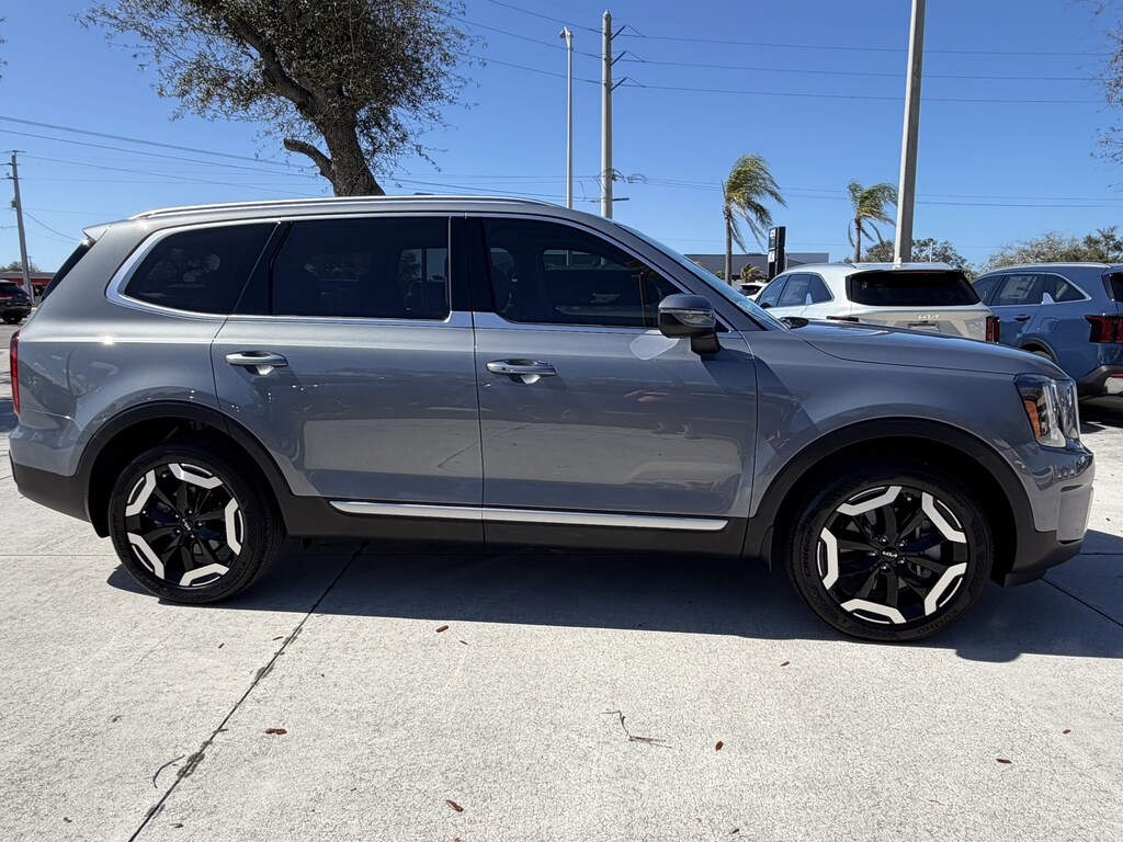Certified. CARFAX One-Owner. Everlasting Silver 2023 Kia Telluride S Recent Arrival! *KIA CERTIFIED*, 3rd row seats: split-bench, 4-Wheel Disc Brakes, ABS brakes, Alloy wheels, Apple CarPlay & Android Auto, Automatic temperature control, Brake assist, Dual front impact airbags, Dual front side impact airbags, Electronic Stability Control, Exterior Parking Camera Rear, Four wheel independent suspension, Front dual zone A/C, Fully automatic headlights, Heated Front Bucket Seats, Navigation System, Power driver seat, Power Sunroof w/Sunshade, Radio: AM/FM Display Audio System, Remote keyless entry, Roof rack: rails only, S Sunroof Package, Smart Key w/ Push Button and Remote Start, Speed-sensing steering, Steering wheel mounted audio controls, Traction control, Variably intermittent wipers.