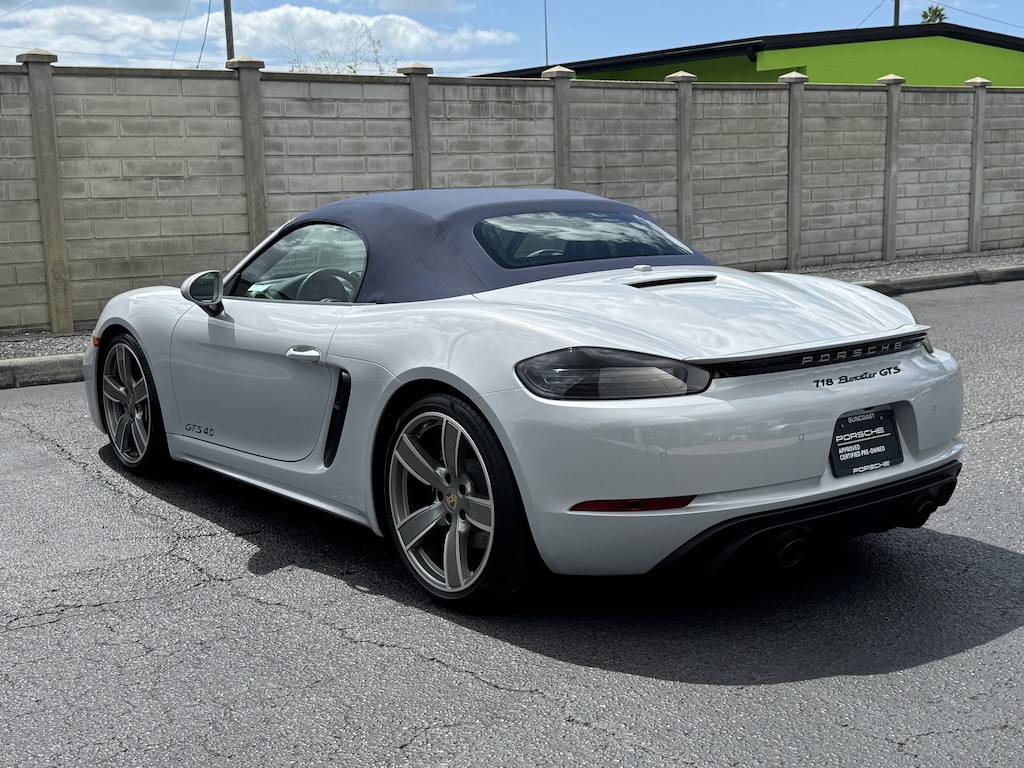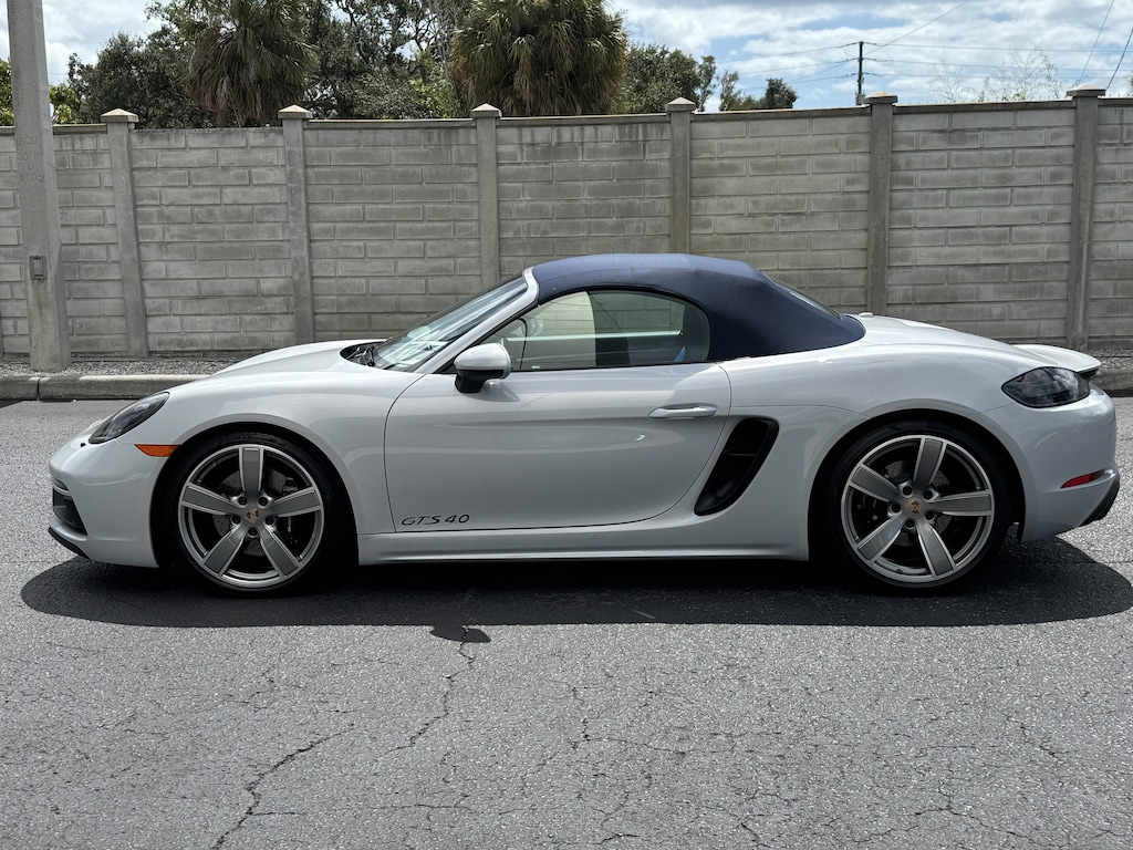 Pricing excludes tax, tag, title and pre-delivery service fee of $99 and private tag agency fee of $24.40. *See below for details..(Not a Misprint), Only 2,346 Miles!..Porsche Certified!..Wow this 718 Boxster GTS 4.0 Roadster includes Premium Package with a 4.0-Liter, 394 HP Naturally Aspirated Boxer 6 Cylinder..7-Speed Porsche Doppelkupplung (PDK) Automatic Transmission..Acceleration 0-60 MPH with Sport Chrono Package, 3.8 Seconds..Top Track Speed, 179 MPH..20" Carrera Sport Wheels..SportDesign Package..Sport Chrono Package..PASM Sport Suspension (Lowered 20 mm)..Porsche Torque Vectoring with Mechanically Locking Differential..Sport Exhaust System..ParkAssist (Front and Rear) including Reversing Camera..Heated Adaptive Sport Leather Seats Plus (18-way) with Memory Package..Bose Surround Sound System..Heated, GT Sport Steering Wheel in Leather..Power Folding Mirrors..Lane Change Assist Blind Spot Monitor..Smartphone Compartment..Porsche Entry & Drive..Adaptive Cruise Control..Dual-Zone Climate Control..Light Design Package..Apple CarPlay..USB Ports..Satellite Radio..Bluetooth and much more..All pre-owned cars regardless of make and model are driven and evaluated by our highly qualified service personnel. Call Our Sales Team Now at 941-923-1700 for More Info, a Test Drive Appointment or to have a Custom Video Sent to you on this Vehicle. Fast Out Of State Shipping Available..The secret of why our cars hold their values: passion never ages. Owning a Porsche should be a very special experience. That's why, when you buy a Porsche Approved Certified Pre-Owned vehicle, we do everything we can to ensure it's really as good as it looks. Porsche Approved Certified Pre-Owned Details:Roadside Assistance. 2 year/Unlimited miles beginning after new car warranty expires or from certified purchase date. Includes Trip Interruption reimbursement. 111 Point Inspection. Transferable Warranty. Warranty Deductible: $0. See dealer for details..What the reviews say..Fierce cornering grip, impressively balanced handling, all the Cayman's fun with extra sun. We're suckers for most sports cars, but the 718 Boxster is a favorite among favorites. Drop the top to hear the exhaust note, and drink in the sun while you carve up switchbacks like you're serving them for dinner. It remains a favorite among our staff, winning yet another 10Best award for 2024 as well as a 2024 Editors' Choice award. For those shopping without limits, the GTS 4.0 model, with its powerful and euphonious flat-six, is the Boxster to choose. The Boxster's handling and steering prowess inspires our deepest admiration. It feels balanced and stable in corners, and the brilliantly communicative steering reacts quickly and accurately to even small inputs. The Boxster's chassis talks to you as if the tire patches have a direct line to your vestibular system, but the ride is comfortable enough for long trips. If youre after classic driving purity, the Porsche 718 lineup delivers like few others. Boxster or Cayman, the 718 is a pretty choice. The 718 offers exceptional balance from its mid-engine configuration. These cars arent just about going places quickly. Theyre about truly enjoying the experience. Porsches mid-engine models are darn near perfect when it comes to driving excitement. They're fantastic sports cars that easily earn a 10 on our scale. We'd even give the highest-performance versions an extra point, if only our scale went to 11.