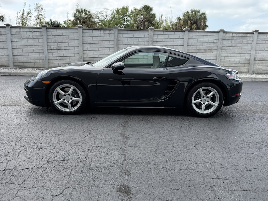 Pricing excludes tax, tag, title and pre-delivery service fee of $999 and private tag agency fee of $24.40. *See below for details..Only 812 Miles!..Porsche Certified!..Wow this 718 Cayman Coupe includes Premium & Sport Chrono Packages with a 2.0-Liter, 300 HP Turbocharged Boxer 4 Cylinder..6-Speed Manual Transmission..Top Speed, 171 MPH..Acceleration 0-60 MPH with Sport Chrono Package, 4.9 Seconds..Sport Exhaust System..Sport Button..Heated/Ventilated, 18-Way Adaptive Leather Sport Seats with Memory Package..Power Folding Exterior Mirrors including Courtesy Lighting..Lane Change Assist..Porsche Entry & Drive..Light Design Package..20" Alloy Wheels..Bi-Xenon Headlights in Black with Porsche Dynamic Light System..Navigation including Porsche Connect..10 Speaker, 505 Watt BOSE Surround Sound System..Satellite Radio..USB Ports..Bluetooth..Dual-Zone Climate Control..Apple CarPlay..7" Touchscreen..HomeLink and more..All pre-owned cars regardless of make and model are driven and evaluated by our highly qualified service personnel. Call Our Sales Team Now at 941-923-1700 for More Info, a Test Drive Appointment or to have a Custom Video Sent to you on this Vehicle. Fast Out Of State Shipping Available..The secret of why our cars hold their values: passion never ages. Owning a Porsche should be a very special experience. That's why, when you buy a Porsche Approved Certified Pre-Owned vehicle, we do everything we can to ensure it's really as good as it looks. Porsche Approved Certified Pre-Owned Details:Roadside Assistance. 2 year/Unlimited miles beginning after new car warranty expires or from certified purchase date. Includes Trip Interruption reimbursement. 111 Point Inspection. Transferable Warranty. Warranty Deductible: $0. See dealer for details..What the reviews say..Packed with pure Porsche DNA. With its sharp chassis, telepathic steering, and rorty powertrain options, the Cayman delivers a singular driving experience that's hard to find elsewhere, and worth every last cent. Regardless of powertrain, telepathic steering and precise handling remain in full effect across the Cayman lineup thanks in part to the inherent balance of the mid-engine layout and the chassis magic that Porsche engineers know how to wield better than almost anyone else. A cozy cabin perfectly places the tools of the trade, the shifter, steering wheel, and pedals, in the ideal locations, adding to the driver's involvement. The 718 Cayman and its Boxster soft-top brethren have been perpetual 10Best winners and remain so for 2025. As one of our favorites in its segment, the Porsche 718 Cayman has also earned a spot on our Editors Choice list for 2025. The Cayman's willing chassis and telepathic steering transcend perfection. This car is a sublime mix of heady handling and a relatively relaxed ride that's plenty comfortable for extended road-tripping. Easy-to-understand gauges, comfortable seats, and well-placed controls give the Cayman's cabin the form-fitting feel of a superhero's suit. Grab these brilliant gas-fueled mid-engine sports cars while you still can. Roadster or coupe, the 718 makes for a dashing sports car. The Porsche 718 is peak mid-engine sports car. Porsche fits a luxury-grade cabin to its 718 models. Adjectives aren't enough to fully describe how good the 2025 Porsche 718 Cayman is to drive. We've tried mightily over the years, however, describing the "genius of the perfectly weighted steering" and "world-class handling" on a winding road. "Absolute bliss" is another way we put it.