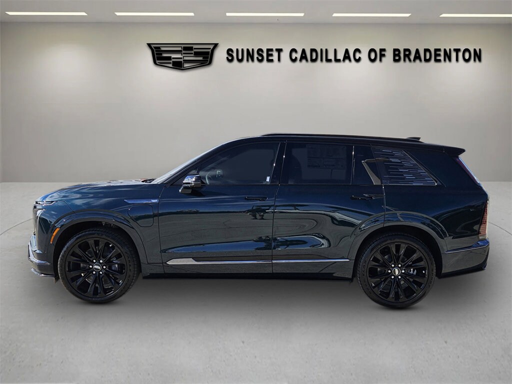 This Cadillac VISTIQ has a dependable Electric engine powering this Automatic transmission. WHEELS, 23" (58.4 CM) REVERSE RIM WITH HIGH GLOSS BLACK FINISH, LPO, FLOOR LINER PACKAGE includes (CAV) Integrated cargo liner, LPO and (RIA) Contoured floor liners, LPO, EMERALD LAKE METALLIC.