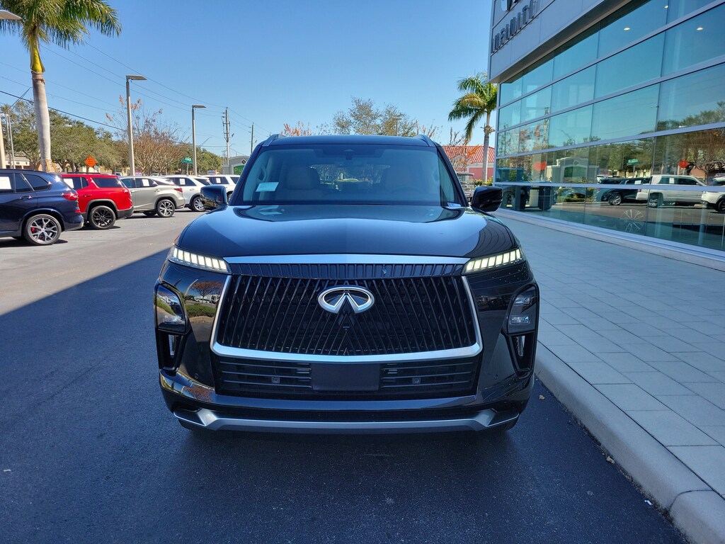 Scores 20 Highway MPG and 16 City MPG! This INFINITI QX80 delivers a Twin Turbo Premium Unleaded V-6 3.5 L/213 engine powering this Automatic transmission. SEPIA BROWN, LEATHER SEATING SURFACES, BLACK OBSIDIAN, [N10] INFINITI RADIANT ILLUMINATED SILVER KICK PLATES -inc: Front and rear doors, Factory installed accessory.