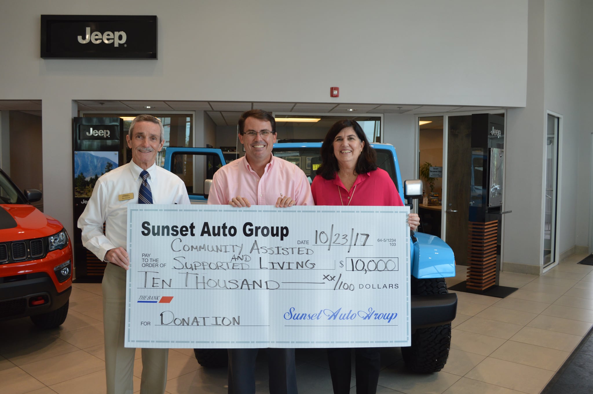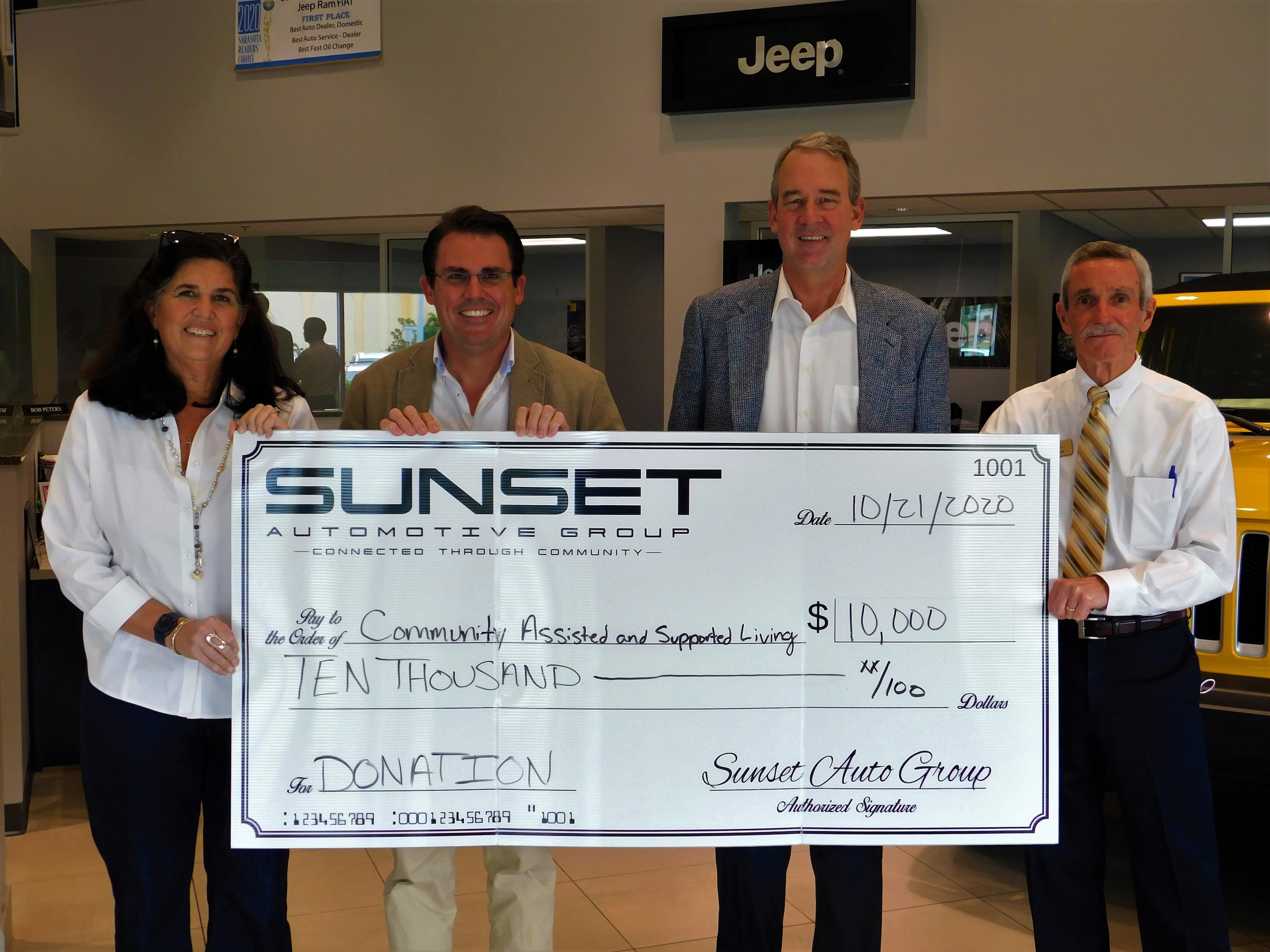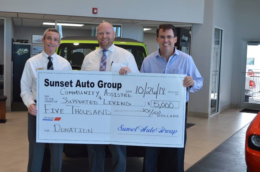 Here at Sunset our mission is to stay Connected Through Community and what better way than to give back to local non-profit organizations supporting our community. On October 26th 2018, Don Osborne, General Manager of Sunset Dodge Chrysler Jeep RAM Fiat, along with Charles Kyle, Sales Manager, presented Scott Eller, CEO of CASL, Inc. with a $5000 donation! Community Assisted and Supported Living (CASL), is a 501 (c) 3, not for profit organization which provides affordable housing and other needed services to adults with developmental disabilities, mental illness, substance abuse problems and co-occuring disorders, as well as to wounded veterans and the homeless.
