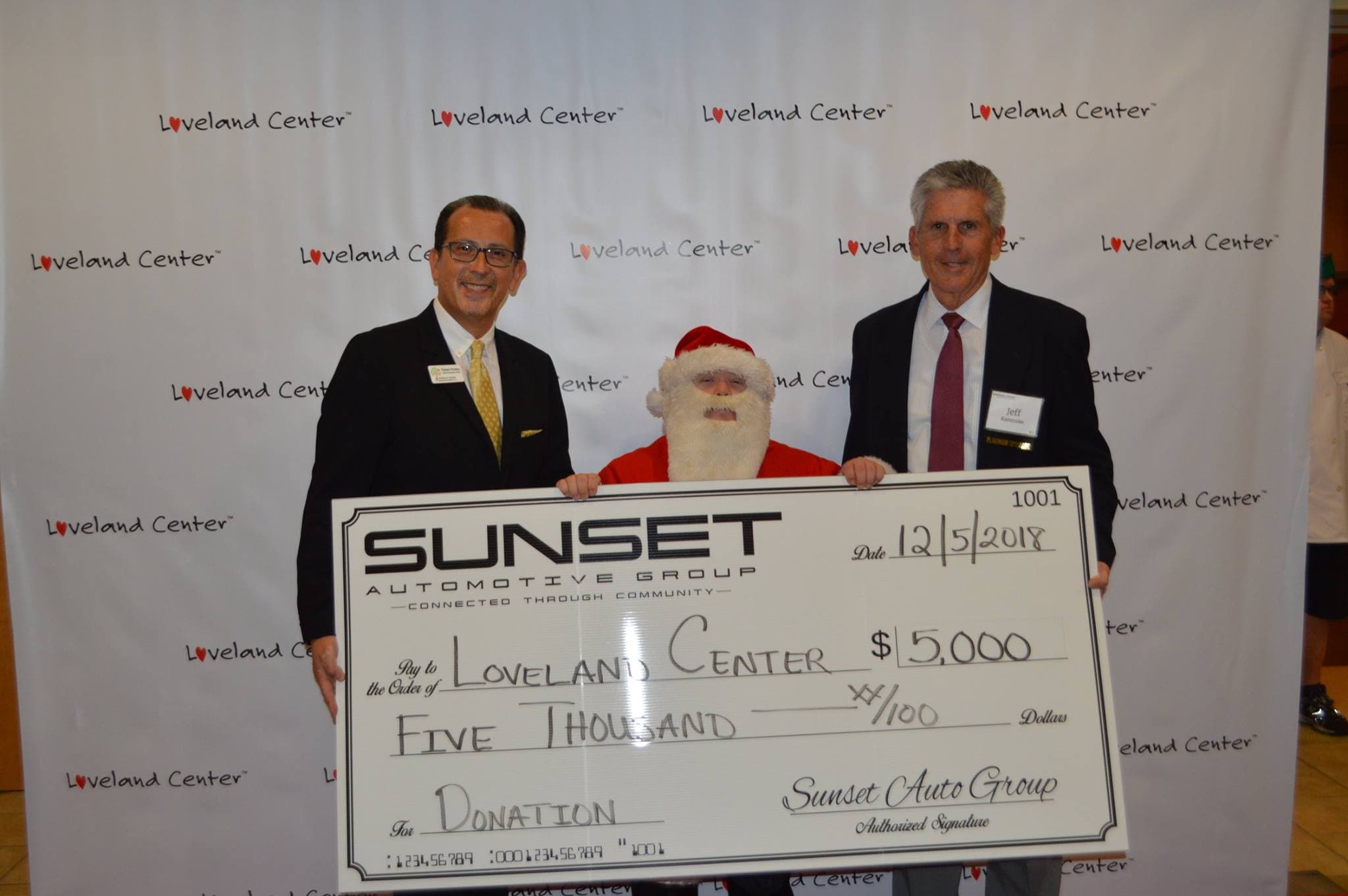 In closing out 2018, we surprised Loveland Center with $5000 to assist in providing services to all their members! Jeff Kaminske, Executive General Manager of Sunset Cadillac of Venice and Sunset Kia of Venice, presented Rafael Robles, Chief Development Officer, and Tim Hedley (Santa) with the check at their annual fundraising BBQ. To learn more about their mission and services please visit the Loveland Center website.