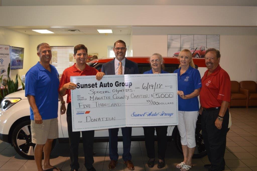 We are so honored to become a Gold Sponsor to the Manatee County Chapter of the Special Olympics! Our General Manager of Sunset Kia of Bradenton, Matt Bradfield, presented the group with the $5,000 check!