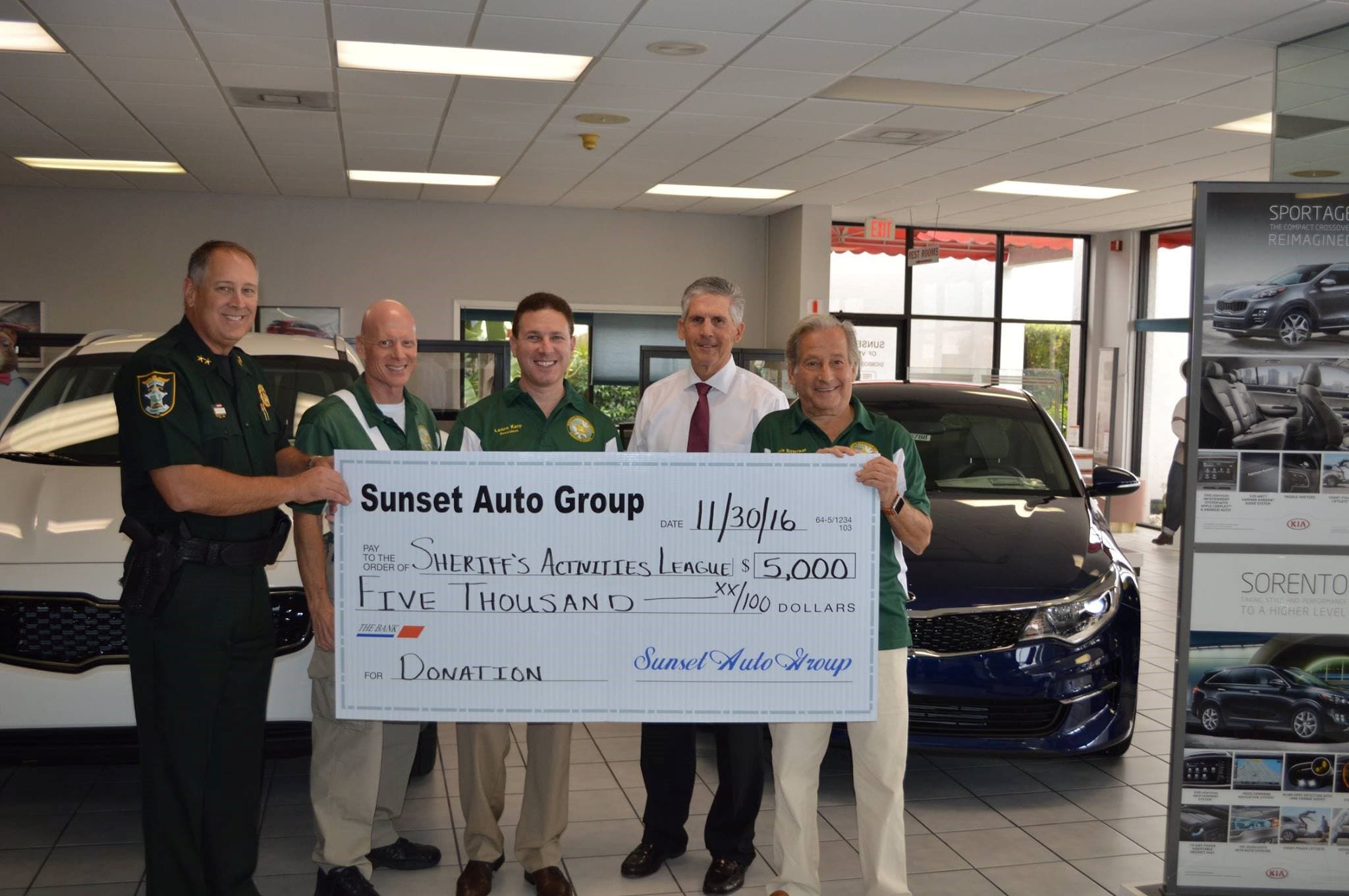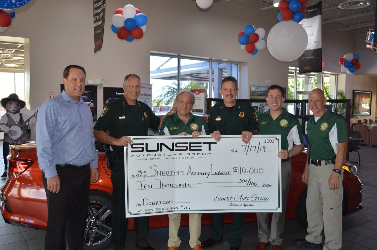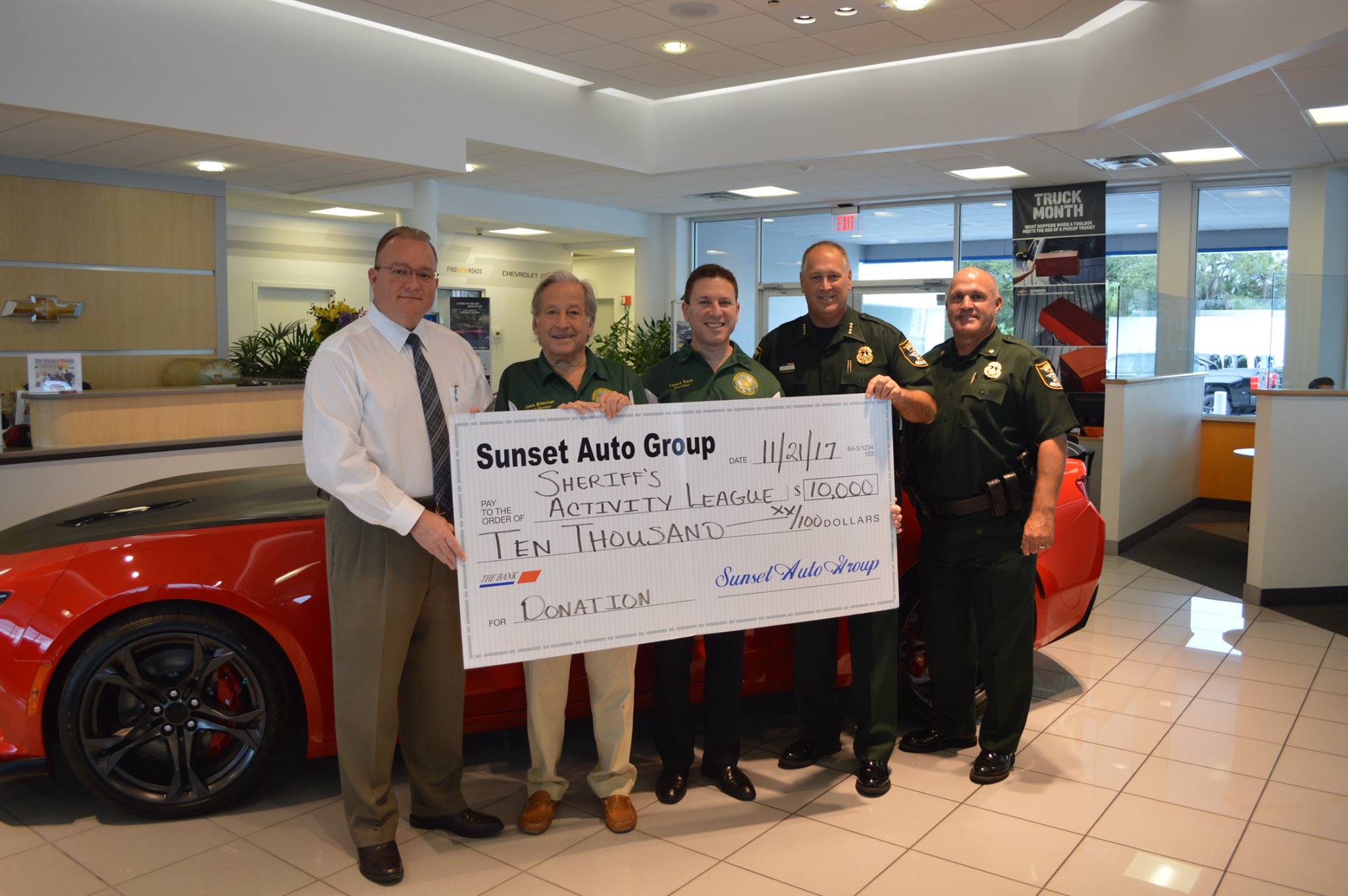 On October 23rd, 2024, Sunset Auto Group was proud to present a $10,000 check to the Sheriff's Activity League of Sarasota County! The League plays a vital role in providing positive opportunities and mentorship to local youth, helping to build stronger communities. On behalf of everyone at Sunset Auto Group, we thank you for your dedication to making a difference in the lives of young people in Sarasota County.