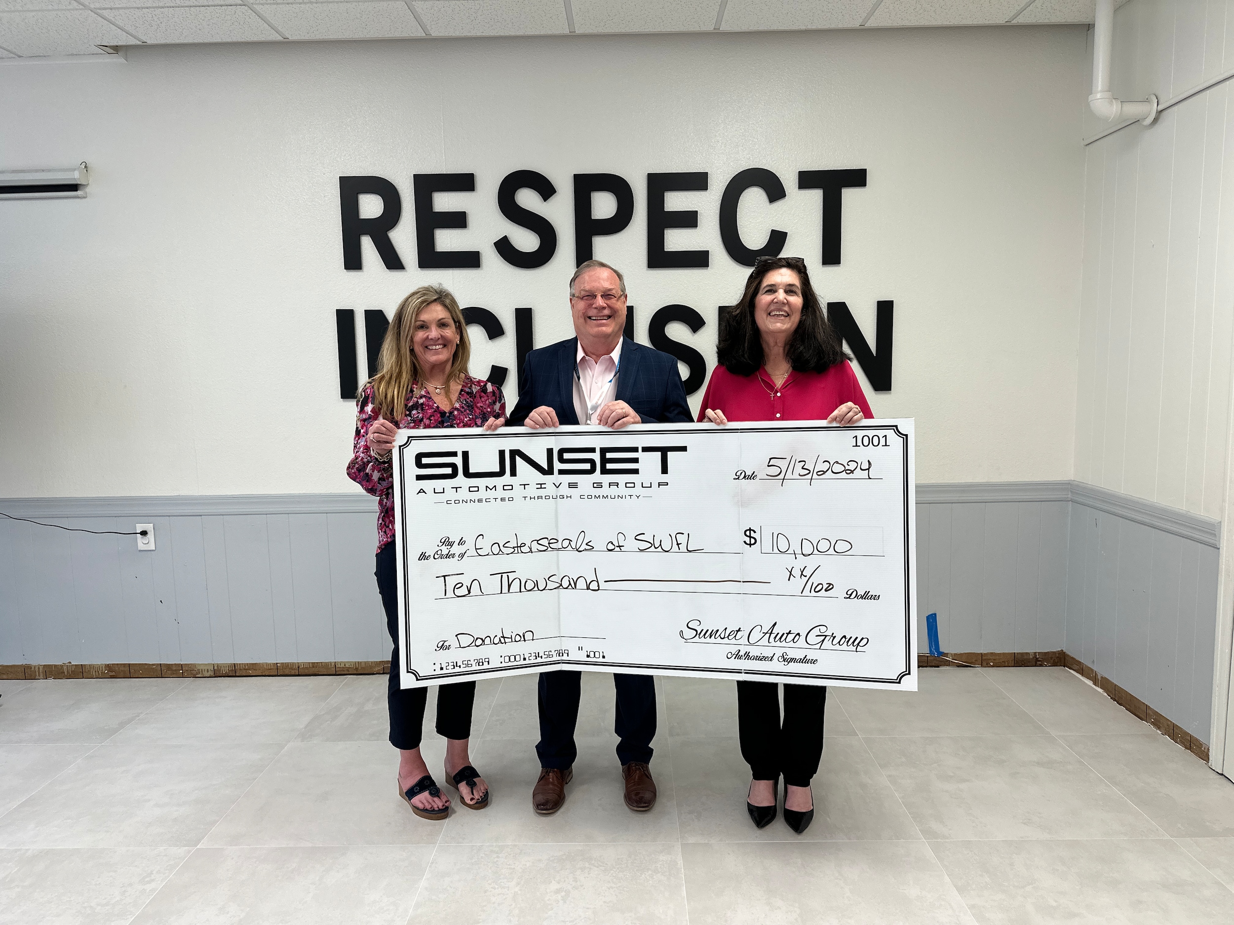 On September 16th, 2024 Sunset Auto Group made a $15,000 donation in support of The Florida Centers "The Wonder Gala". The Wonder Gala honors the remarkable journey of the children and families supported by The Florida Center. From all of us here at Sunset Auto Group, thank you for all that you do!