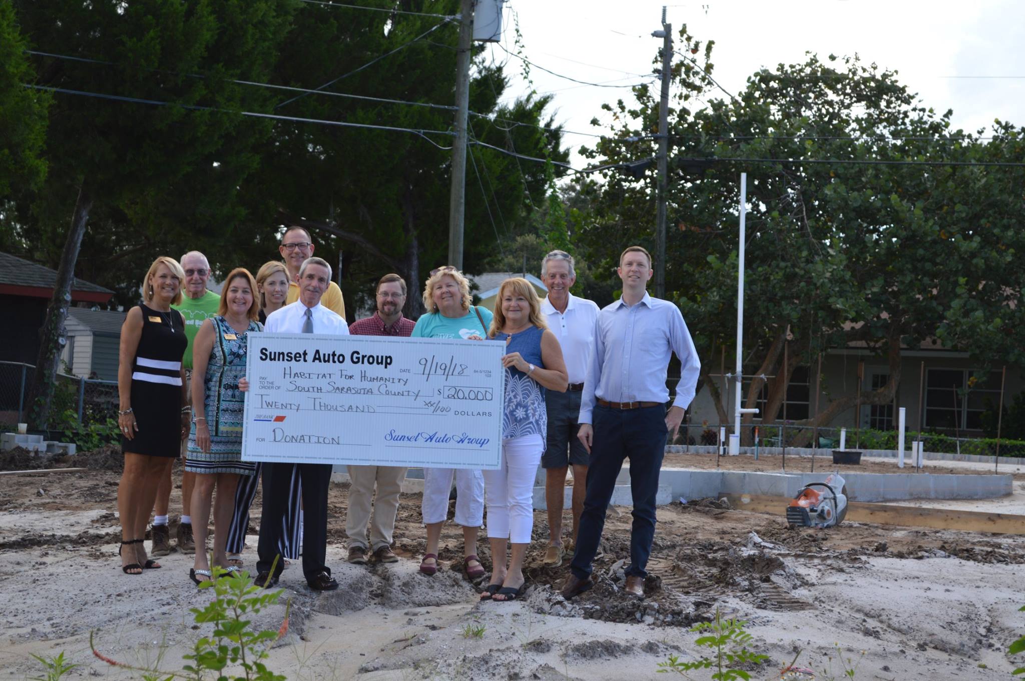 We are so excited to be a part of this mission with Habitat for Humanity South Sarasota. The group recently donated $20,000 to the House That Faith built project in Venice. Don Osborne, General Manager of Sunset Dodge Chrysler Jeep RAM Fiat, presented the committee with the check!