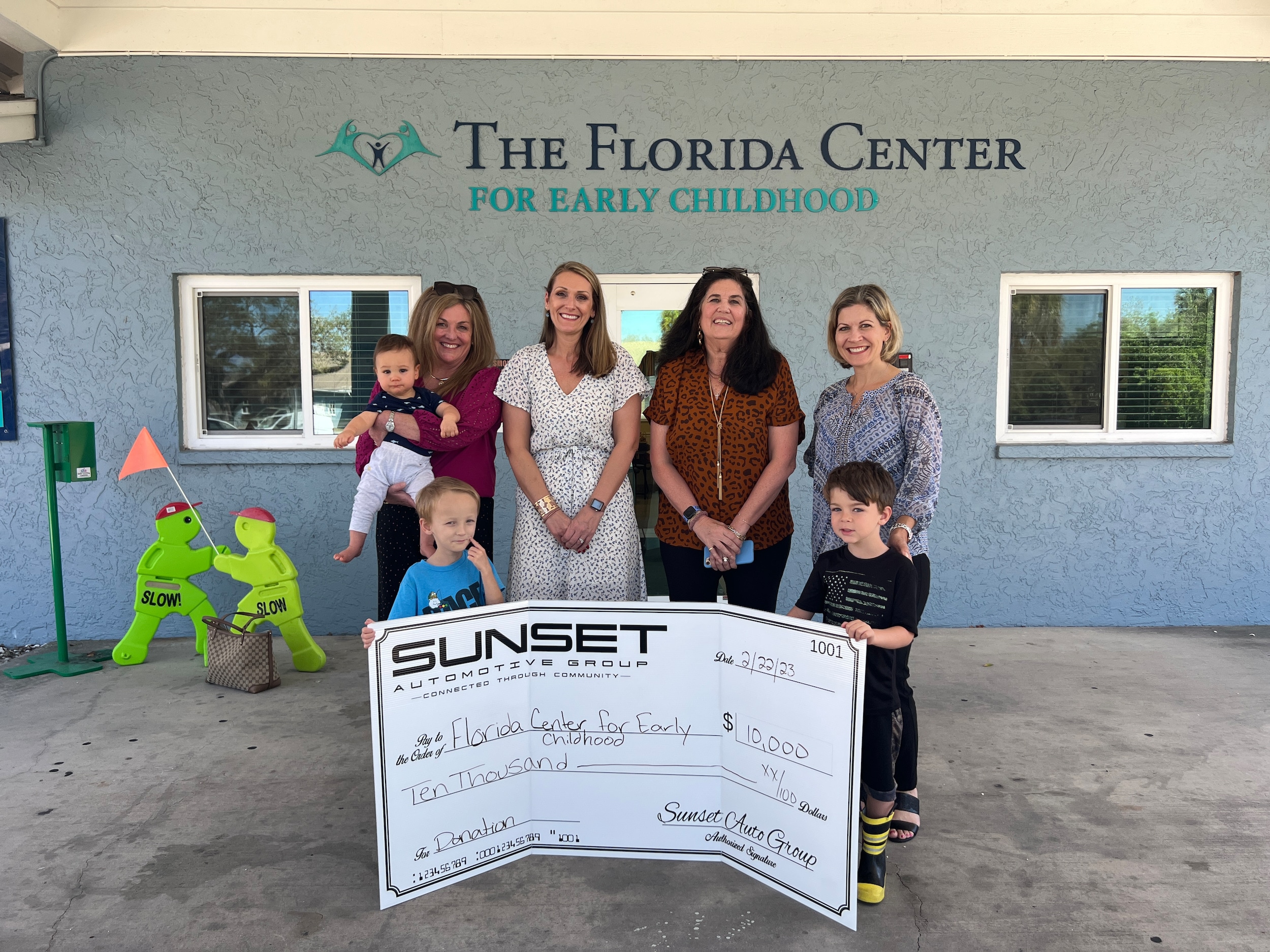 What a way to stay Connected Through Community! Sunset Auto Group has partnered with The Florida Center for Early Childhood to help continue the vision of helping children reach their full potential. The Florida Center provides developmental therapies, mental health counseling, and the Starfish Academy preschool in Sarasota and North Port. The organization also offers Healthy Families, a home-visiting program that guides parents who need assistance.