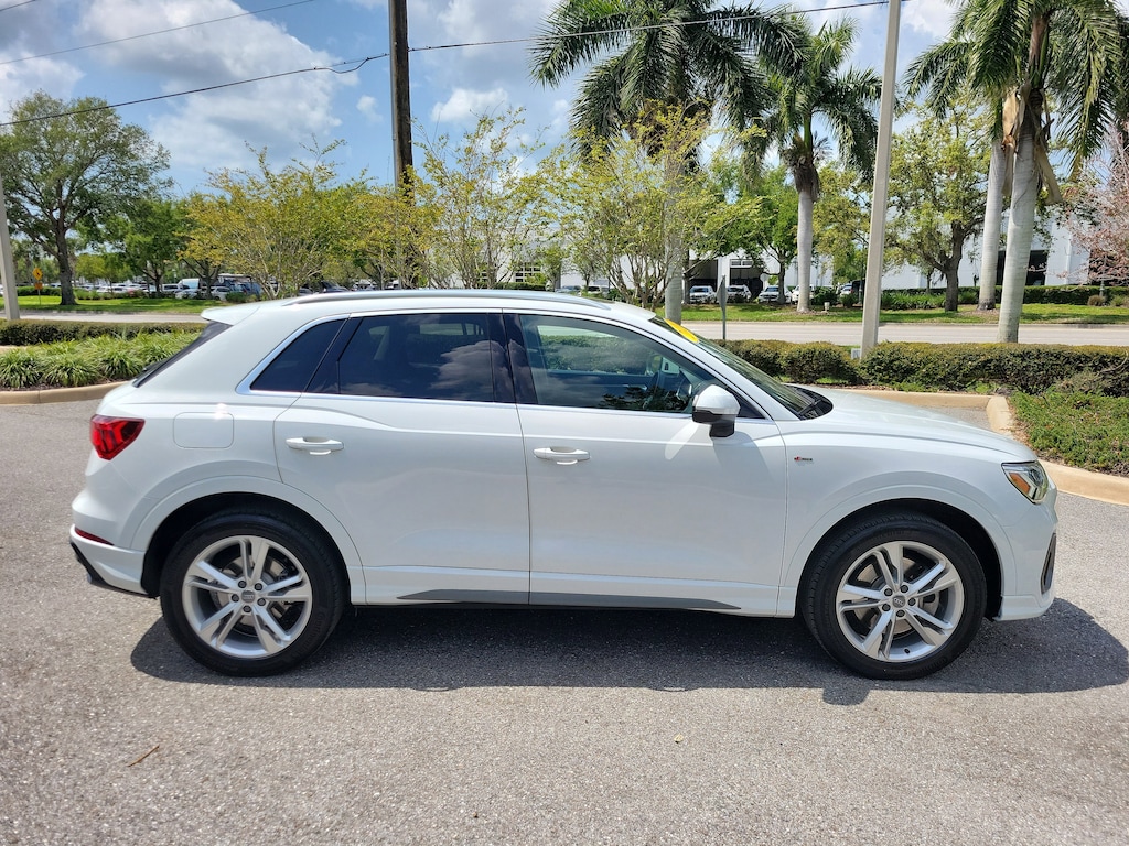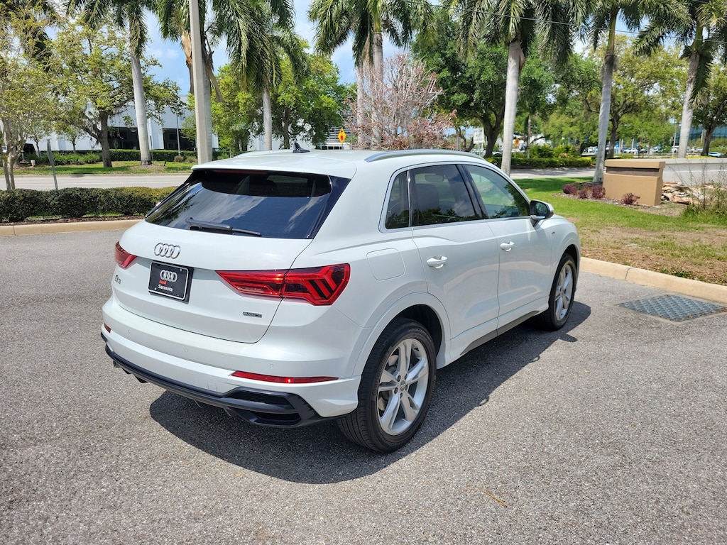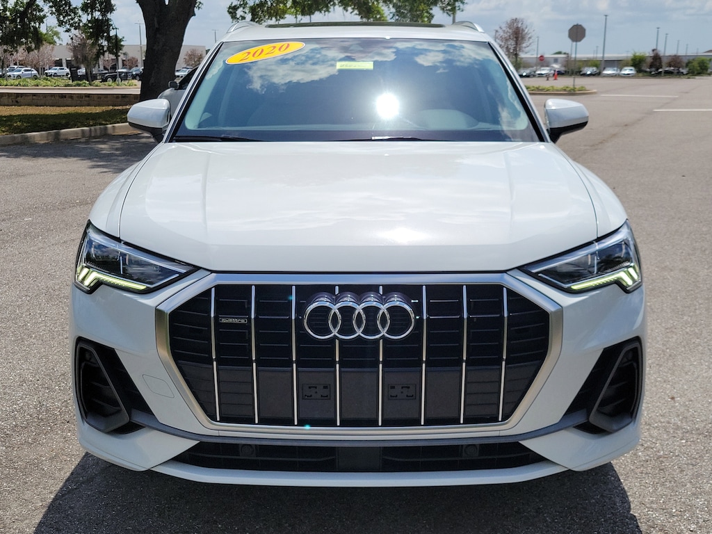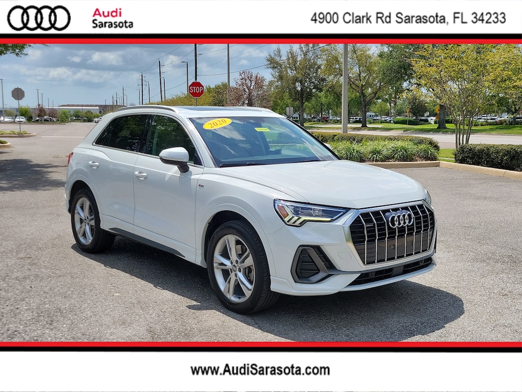 Pricing excludes tax, tag, title and pre-delivery service fee of $999 and private tag agency fee of $24.40. *See below for details..Carfax 1 Owner!..This All Wheel Drive Q3 S Line Premium Plus Quattro includes Navigation Package with Audi Side Assist Blind Spot System with Rear Cross Traffic Alert..Lane Departure Warning..Backup Camera..Navigation Plus..Bang & Olufsen 3D Sound System..Audi Phone Box with Wireless Charging..10.1" Touchscreen..12.3" Audi Virtual Cockpit..Audi Advanced Key..Audi Pre-Sense Front & Basic..Park Assist Sensors..Full LED Headlamps..Panoramic Moonroof..Apple CarPlay & Android Auto..LED Interior Lighting Package..Dual Zone Climate Control..Bluetooth..4-USB Ports..Power Tailgate..19" Alloy Wheels..Power Adjustable, Heated Leather Seats..Satellite Radio..Park Assist..HomeLink..2.0L 228 HP 4 Cylinder Turbo..8 Speed Automatic Transmission..All power equipment and much more..Call Our Sales Team Now at 941-922-0000 for More Info, a Test Drive Appointment or to have a Custom Video Emailed or Sent to your Smartphone on this Car..Fast Out of State Shipping Available!..All pre-owned cars regardless of make and model are driven and evaluated by our highly qualified service personnel. We invite you to come see our brand new state of the art dealership and take a test drive with one of our highly trained Audi Brand Specialists. You will be glad you did..What the reviews say..Dashing inside and out, many desirable standard features, good interior packaging. With subcompact crossovers all the rage right now, the 2020 Audi Q3 stands out as one of the flashier examples of the genre. Its prominent grille and neatly creased sheetmetal imitate stylish siblings such as the Audi Q8, and those complimentary aesthetics continue inside. Every Q3 has a spacious front seat and classy interior that provide myriad luxury niceties. The Q3 is powered by a 228-hp turbocharged four-cylinder engine and comes standard with both an eight-speed automatic transmission and Audi's Quattro all-wheel drive. In our time behind the wheel, we noted that the engine provided ample power. Audi covers the small SUV basics well too. The Q3 is roomy for four adults and comfortable on the highway. The interior also impresses with solid construction and high-quality materials. How's the interior? The Q3 has an accessible seating position that will meet the needs of most buyers. There's plenty of headroom up front and enough room for two adults to be comfortable in back. It's also pretty easy to see out of the Q3 thanks to big windows and a short hood. The optional 10.1-inch touchscreen is responsive to the touch and offers a helpful clicking noise to let you know the command is registered. The buttons on the steering wheel and center console are clearly labeled. How's the tech? With the optional MMI navigation feature, the Q3 can operate Apple CarPlay wirelessly. Navigation is simple to input and control, but the real star is the map itself, which offers a beautiful three-dimensional view. All of the Q3's active driver safety features work well. The rear door openings are wide enough to easily lean in and set up rear-facing car seats. The car seat anchors are simple to access, and there are three back anchors for overhead security. Is the Q3 a good value? No gaps, creaks or cheap plastics here. The surfaces inside the Q3 are tastefully put together and great to the touch. You choose Audi because you know what to expect. The Q3 has a driving feel and styling language that is consistent with the brand yet wholly distinctive from other luxury automakers. Solid build quality, great infotainment and small personalized touches such as available ambient lighting give the crossover a hint of panache.
