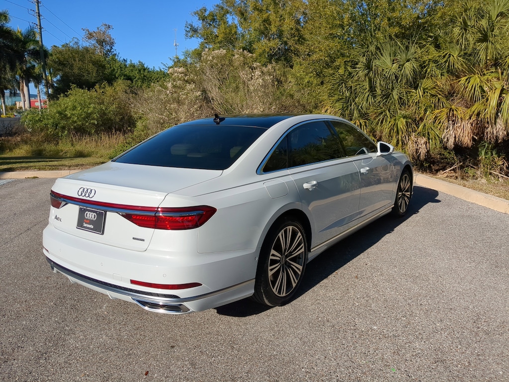 Pricing excludes tax, tag, title and pre-delivery service fee of $999 and private tag agency fee of $24.40. *See below for details...Wow this One Owner, All Wheel Drive A8 L Quattro V8 is Loaded with Options including Executive Plus Package that includes a 4.0L 453 HP V8..8 Speed Automatic Transmission..Predictive Active Suspension..Audi Side Assist..Backup Camera with Top View and Virtual 360 Degree View..Head-Up Display..Apple CarPlay and Android Auto..Factory Navigation..12.3" Audi Virtual Cockpit..Park Assist..Pre-Sense Basic..Pre-Sense Front Low Speed Collision Assist..Power Panoramic Moonroof..22 Way Adjustable, Heated, Cooled and Massaging Valcona Leather Seats..Adaptive Cruise Control with Traffic Jam Assist..Audi Active Lane Assist with Emergency Assist..Turn Assist-Intersection Assist..17 Speaker Bang & Olufsen 3D Audio System with Satellite Radio..Bluetooth for Phone and Audio..Heated Rear Seats..Adaptive Windshield Wipers..Paddle Shifters..4-Zone Climate Control..Power Rear Window Sunshade and Rear Doors..20" Alloy Wheels..Power Soft-Close Doors..High-Beam Assist..HD Matrix Design LED Headlamps..Audi Connect Care, Prime and Plus..Power Open/Close Trunk..10.3" Touchscreen..8.6" Center Screen..All Power equipment and much more..The original price was $109,895.00..Call Our Sales Team Now at 941-922-0000 for More Info, a Test Drive Appointment or to have a Custom Video Emailed or Sent to your Smartphone on this Car..Fast Out of State Shipping Available!... (See dealer for details)..What the reviews say...Quiet cabin with plenty of luxuries, all the best tech features are standard, comfortable but still capable in the corners. In the same way that a simple but well-tailored tuxedo elevates one's style, the quietly luxurious 2021 Audi A8 is handsome and looks expensive without being flashy. Audi's largest and most luxurious sedan, the 2021 A8, hides its high-dollar cabin behind a handsome-yet-understated facade. It even earns a spot on our Editors' Choice list. Audi has rolled out its entire cavalcade of infotainment and driver-assistance technology here, as the A8 serves as a rolling showcase of whiz-bang features. Going with the 60 TFSI model puts the A8's best feature under the hood: A 453-hp twin-turbocharged V-8. The A8 offers a very Audi-like blend of athleticism and ride comfort. An adjustable air suspension and driver-adjustable adaptive dampers are standard. Optional with the V-8 is a more advanced active suspension that scans the road ahead for bumps and takes measures to compensate. Impressive passenger space is an A8 hallmark, and its long wheelbase ensures that rear-seat passengers are well accommodated. Audi's excellent 12.3-inch Virtual Cockpit instrument cluster is standard as are the 10.3-inch upper and 8.6-inch lower haptic center screens with the MMI Touch Response system. A worthy flagship, the 2021 Audi A8 is thoroughly modern and eminently comfortable. The 2021 Audi A8 delivers smooth, effortless power and a buttery ride. The A8 60 TFSI quattro summons 453 hp from a turbo 4.0-liter V-8 and cuts the 0-60 mph time to 4.5 seconds. The 2021 Audi A8s interior is high tech and high comfort. Loaded with equipment and technology, the 2021 Audi A8 is worthy of its flagship status.