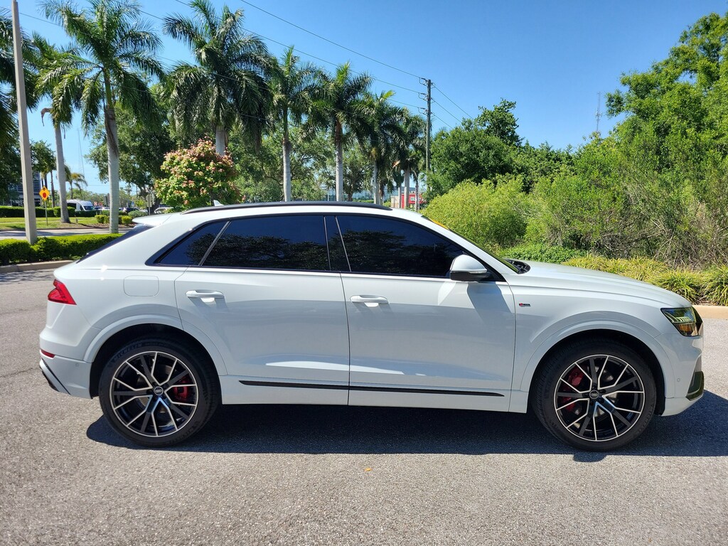 Pricing excludes tax, tag, title and pre-delivery service fee of $999 and private tag agency fee of $24.40..Wow this All Wheel Drive Q8 Premium Plus Quattro includes Executive, S-Line Style, S-Line Plus & Towing Packages with a Turbocharged 3.0L 335 HP V6..8 Speed Automatic Transmission..Audi Side Assist Blind Spot System..Lane Departure Warning..360 Degree Backup Camera..Rear Cross Traffic Alert..Audi Pre-Sense Basic and Front with Forward Collision Warning and Avoidance System..Audi Active Lane Departure Warning..Audi Adaptive Cruise Assist..HD Matrix-Design LED Headlights.Heated Rear Seats.LED DRL & Taillights..12.3" Audi Virtual Cockpit..10.1" Touchscreen..8.6" Lower Screen..22" Alloy Wheels..4-Zone Climate Control..17 Speaker, Bang & Olufsen 3D Premium Sound System..Contour/Ambient LED Interior Multicolor Lighting Package..Heated 3-Spoke Multifunction Steering Wheel..Heated Auto-Dimming Power Folding Exterior Mirrors..Driver & Passenger Front Seats with Ventilation..4-Way Power Lumbar..Illuminated Door Sills..MMI Navigation System..Panoramic Sunroof..AppleCarplay/Android Auto..Satellite Radio..Bluetooth for Phone and Audio..Adaptive Damping Suspension..Heated Leather Seats..Power Tailgate..USB Ports..LED Headlamps with High Beam Assist..Audi Phone Box with Wireless Charging and Signal Booster..Heated Steering Wheel..Black Optic Exterior Kit..Red Brake Calipers..Tow Hitch..All power equipment and much more..Call Our Sales Team Now at 941-922-0000 for More Info, a Test Drive Appointment or to have a Custom Video Sent to you on this Car. Fast Out of State Shipping Available!..All pre-owned cars regardless of make and model are driven and evaluated by our highly qualified service personnel. We invite you to come see our brand new state of the art dealership and take a test drive with one of our highly trained Audi Brand Specialists. You will be glad you did..What the reviews say..Athletic enough to satisfy enthusiasts, refined enough to coddle passengers, great mix of luxury and technology. The 2021 Audi Q8 has one less row of seats and a lot more style than the three-row Q7 SUV that it is based on. With a coupe-like profile and bolder bodywork, the two-row Q8 kicks off the company's line of ultimate crossovers. The Q8 also provides a carlike driving experience that is both athletic and refined. Its cabin is beautifully appointed and solidly put together in typical Audi fashion. While it holds fewer people and has less cargo space than its three-row sibling, the 2021 Q8 is best suited for those who prioritize sportiness, luxuriousness, and style. Audi provides every Q8 with a turbocharged 3.0-liter V-6 that makes 335 horsepower and 369 lb-ft of torque. It pairs with an eight-speed automatic transmission and Quattro all-wheel drive. A 48-volt hybrid-assist system aids stop-start operation, which was smooth and quiet during our experience. Following the guidelines established by other crossover "coupes," the Q8 provides high-riding capability with sporty driving responses. In typical fashion, Audi has crafted a sophisticated and sturdy environment inside the Q8. The materials are premium, and the panels are expertly aligned. In Edmunds testing, 0-60 mph came in 5.6 seconds. That's quick. The Q8 handles admirably through tight and sweeping corners alike.