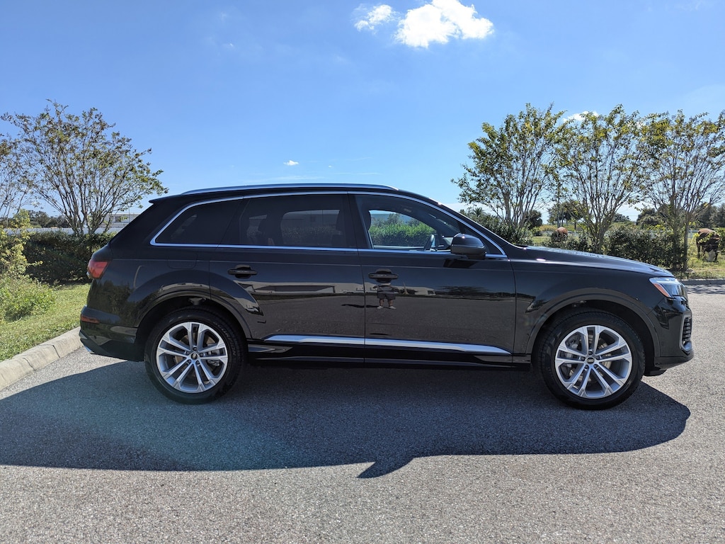 Pricing excludes tax, tag, title and pre-delivery service fee of $999 and private tag agency fee of $24.40. *See below for details..Audi Certified!..Audi Sarasota Courtesy Vehicle with Only 6,144 Miles..This All Wheel Drive Q7 Premium Plus Quattro includes Executive Package with Audi Side Assist Blind Spot Warning with Rear Cross Traffic Alert..Top View Camera System..Lane Departure Warning..Front/Rear Park Assist Sensors..Audi Pre-Sense Basic and Front with Forward Collision Warning and Avoidance Assist..Adaptive Cruise Assist with Lane Guidance..Traffic Sign Recognition..Dual-Pane Acoustic Glass..Bang & Olufsen 3D Sound System..LED Interior Lighting..LED Headlights..High-Beam Assist..Heated Steering Wheel..Wireless Apple CarPlay..Android Auto..Satellite Radio..Bluetooth for Phone & Audio..4-USB Ports..Audi Virtual Cockpit..Hands-Free Power Tailgate..10.1" Upper Touchscreen..8.6" Lower Touchscreen..Digital Instrument Cluster..3-Spoke Multifunction Steering Wheel with Shift Paddles..Heated Auto-Dimming Power Folding Exterior Mirrors..Illuminated Door Sills..4-Zone Automatic Climate Control..Power Adjustable, Heated/Ventilated Leather Seats with Power Lumbar..Heated Rear Seats..7 Passenger Seating with Power Folding 3rd Row..20" Alloy Wheels..Tow Hitch..Roof Rails..Factory Navigation..Two-Panel Panoramic Sunroof..Quattro AWD System..3.0L 335 HP 6 Cylinder..8 Speed Automatic Transmission..All power equipment and much more..All pre-owned cars regardless of make and model are driven and evaluated by our highly qualified service personnel. Call Our Sales Team Now at 941-922-0000 for More Info, a Test Drive Appointment or to have a Custom Video Sent to you on this Vehicle. Fast Out Of State Shipping Available..Over 125 components are inspected by Audi trained technicians to ensure each Audi Certified pre-owned vehicle is in optimal condition. Only after this comprehensive dealer inspection are we confident in backing the vehicle with our Audi Certified pre-owned Limited Warranty, which is more than a seal of approval, it's a badge of honor. When the Audi New Vehicle Limited Warranty expires, the Audi Certified pre-owned Limited Warranty becomes effective and provides coverage for a period of one year or 20,000 miles, whichever occurs first. (See dealer for details)..What the reviews say..The Audi Q7 is one of the best three-row luxury SUVs you can buy. It impresses with a lush interior, smooth performance, and a comprehensive set of tech features. How does the Audi Q7 drive? In our testing, the V6-powered Q7 accelerated from 0 to 60 mph in 5.6 seconds, making the Q7 one of the quicker non-performance vehicles in its class. Acceleration from a stop or on the freeway is smooth, rapid and drama-free. The Q7 is Audi's largest SUV and only three-row model. It's the Audi to get if you have a big family because it seats up to seven passengers. Other SUVs like the smaller Q5 and the Q8, which is the sportier version of the Q7, have two rows that seat up to five passengers. The Q7's spacious seating, comfortable ride, and impressive tech features like the dual center touchscreens and sharp-looking digital instrument cluster all make it suited to ferrying families or large groups. The Q7's sophisticated design, high-tech interior and practicality make it an attractive option if you're seeking a luxury three-row SUV. How comfortable is the Q7? The Q7 is one of the more comfortable vehicles in its class. There's very little road or wind noise. The seating position gives you an expansive view out of the front as well as to the sides and rear. The first and second rows are roomy. A bit rare for the class are three sets of child safety seat anchors across the second row and two in the third row, providing some good child seat placement options. The Audi Q7 proves that family hauling and driving enjoyment aren't mutually exclusive.