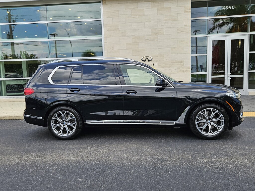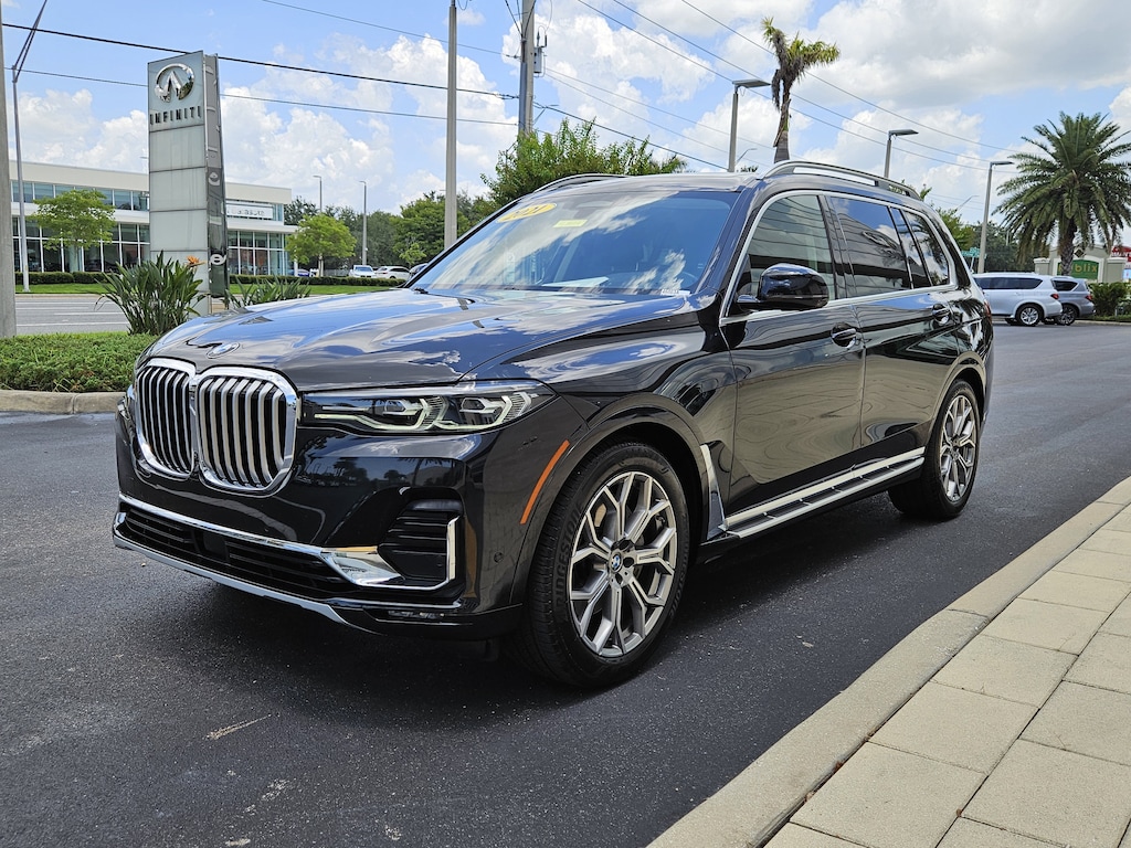 Pricing excludes tax, tag, title and pre-delivery service fee of $999 and private tag agency fee of $24.40. *See below for details..Carfax 1 Owner!..Wow this All Wheel Drive BMW X7 xDrive40i includes Premium, Parking Assistance, Driving Assistance Professional and Luxury Seating Packages with a 3.0L 335 HP Turbocharged 6 Cylinder..8 Speed Automatic Transmission..Active Blind Spot Monitor with Rear Cross Traffic Alert..Lane Departure Warning..3D Surround View Camera..Parking Assistance Plus with Automated Parking Sensors..Forward Collision Warning..Automatic Emergency Braking..Active Cruise Control with Stop and Go..Active Lane Keeping Assistant with Side Collision Avoidance..Steering and Traffic Jam Assistant..Automatic Lane Change Evasion Assistant and Cross-Traffic Alert Front..Extended Traffic Jam Assistant..Drive Recorder..Self-Leveling Air-Ride Suspension..Head-Up Display..Automated Parking System..Remote Engine Start..5-Zone Climate Control..Power Panoramic Moonroof..Power Adjustable, Heated/Ventilated Leather Seats..Front Massaging Seats..Multi-Contour Seats..2nd Row Captaims Chairs..3rd Row Seat with 6 Passenger Seating..Heated Rear Seats..Soft-Close Doors..21" Alloy Wheels..Harman Kardon Surround-Sound System..Apple CarPlay..Wireless Charging Pad..Satellite Radio..2-USB Ports..Bluetooth for Phone and Audio..Gesture Control..12.3" Touchscreen..Factory Navigation..12.3" Display Screen..Tow Hitch..All power equipment & more...All pre-owned cars regardless of make and model are driven and evaluated by our highly qualified service personnel. We invite you to come see our brand new state of the art dealership and take a test drive with one of our highly trained Infiniti Specialists. You will be glad you did. Call Our Sales at 941-924-1211 for more info or to have a custom video emailed to you..Fast Out Of State Delivery Available..What the reviews say..Powertrains' deliciously smooth power, interior as quiet as a library but much comfier. The 2021 BMW X7 is the brand's biggest people mover and brings an undeniably upscale aura and impressive levels of performance. The beauty of the big BMW is that every one has a cushy and hushed cabin, as well as a plethora of luxury amenities and driver-assistance tech. Borrowing partially from the smaller BMW X5 SUV and partially from the upscale BMW 7-series sedan, the X7's rich interior is well-appointed, tech-packed, and spacious. The X7 is a stately BMW SUV. Performance isnt sacrificed to size. Few vehicles balance comfort, luxury, and spaciousness like the 2021 BMW X7. The 2021 BMW X7 is the ultimate luxury machine. The BMW X7 is a luxurious tech showcase loaded with goodies. Comfort and convenience reign in all three rows of the X7. Available captains chairs in the second row provide better comfort and access to the third row, which is large enough to fit two adults. Standard features run the gamut from an air suspension and 12.3-inch touchscreen with smartphone compatibility to advanced driver assist systems ranging from automatic emergency braking to adaptive cruise control down to a stop. The 2021 BMW X7 can be had with the turbo engines found under the hood of BMWs performance cars and an 8-speed automatic transmission with quick, clean shifts thats ubiquitous across the lineup. All-wheel drive is the only way to get an X7, and the near perfect 50/50 weight balance that favors the rear helps this portly 5,397-pound SUV handle much lighter than it looks but with the sure-footedness you'd expect from AWD. There is plenty of power to shrug off any size concerns, and when not testing its limits the X7 remains quiet and composed. The four-wheel independent suspension with standard air suspension comports the X7 for comfort and quiet in most uses, but can be tightened up for more spirited driving.