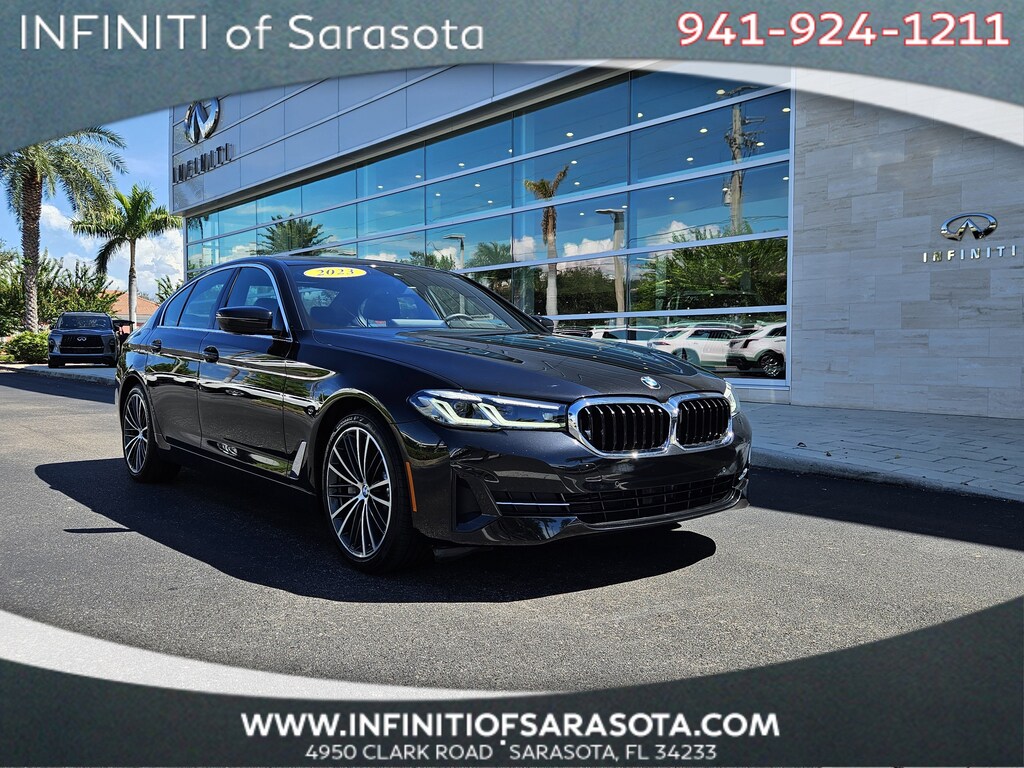 Pricing excludes tax, tag, title and pre-delivery service fee of $999 and private tag agency fee of $24.40. *See below for details..Wow this BMW 530i Sedan includes Premium Package with a Turbocharged 2.0L 4 Cylinder Engine with 248 HP and 257 lb-ft of Torque..8 Speed Automatic Sport Transmission..Forward Collision Warning with Automatic Braking..Blind-Spot Warning with Rear Cross-Traffic Warning..Lane Departure Warning..Backup Camera..Power Adjustable, Heated Seats..Power Tailgate..Remote Engine Start..19" Alloy Wheels..Adaptive LED Headlight..Power Sunroof..Dual-Zone Climate Control..Android Auto and Apple CarPlay..Live Cockpit Pro with Built-In Navigation..Digital Gauge Cluster..12.3" Center Display..Bluetooth for Phone & Audio..Park Distance Control..USB Port..Ambient Lighting..Wi-Fi Hotspot..Satellite Radio..12 Speaker Audio System..USB Ports..All power equipment and more..Includes The Balance Of Factory Warranty...All pre-owned cars regardless of make and model are driven and evaluated by our highly qualified service personnel. We invite you to come see our brand new state of the art dealership and take a test drive with one of our highly trained Infiniti Specialists. You will be glad you did. Call Our Sales at 941-924-1211 for more info or to have a custom video emailed to you..Fast Out Of State Delivery Available..What the reviews say..Comfortable passenger accommodations, broad range of slick powertrains, tech gadgets galore. Smooth, powerful, and efficient, both the four-cylinder in the 530i and the six-cylinder in the 540i motivate this big sedan with authority. The 540i's powertrain benefits from a little extra boost, care of a 48-volt hybrid system. Each engine pairs with an eight-speed automatic transmission that shifts intuitively and quickly, making the most of the available power. Rich appointments and good design make the cockpit of the 5-series a civilized space. It's also spacious for rear-seat passengers and features an impressive amount of technology. A large 12.3-inch high-resolution central display comes standard on every 5-series. You can control it by using BMW's iDrive rotary knob, tapping the screen, or saying various voice commands. All 5-series models come with a digital gauge display that can be configured to show a variety of information to the driver. Navigation, a USB port, Bluetooth audio, SiriusXM satellite radio, and Apple CarPlay and Android Auto capability are all included in the tech suite. The 2023 BMW 5 Series lives up to the expectations set by its forebears. There's an engine for nearly every taste, and the car's handling capabilities are fundamentally sound. Factor in the 5 Series' top-shelf tech and safety features and you've got a prime pick for a midsize luxury sedan. How does the 5 Series drive? If the driving experience is truly important to you, then the 5 Series is a sedan to consider. Most of the models are well-rounded performers. In our testing, the four-cylinder 530i managed to cover 0-60 mph in 6.2 seconds, a good showing for a base engine. How comfortable is the 5 Series? The 5 Series is a supremely comfortable car. We are also impressed with the ride quality, it's comfortable and relatively plush yet well damped so it doesn't feel floaty. Hows the interior? The 530i's cabin is an excellent place to spend time. Front passengers have ample room. And thanks to the highly adjustable seat and steering wheel, drivers of just about all sizes should be able to find a comfortable position. Climbing in or out is a breeze thanks to generous door openings with plenty of head clearance. Rear legroom is spacious.