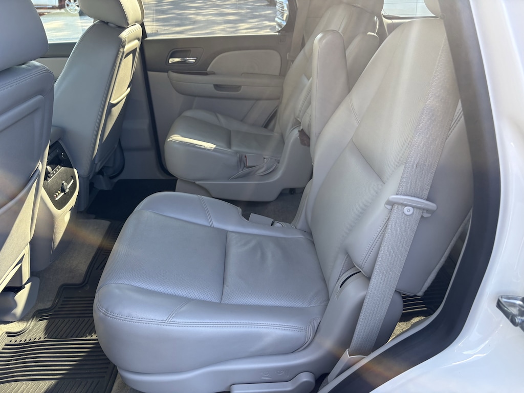 Recent Arrival! White Diamond Clearcoat 2014 Chevrolet Tahoe LTZ 1LZ Vortec 5.3L V8 SFI Flex Fuel Iron Block RWD **CERTIFIED WITH LIMITED BUMPER TO BUMPER WARANTY**, **10 DAY SATISFACTION GAURANTEE**, 12-Way Power Driver Seat Adjuster, 20" x 8.5" Polished Aluminum Wheels, 2nd Row Power Seat Release, 2nd Row Reclining Bucket Seats, 3.42 Rear Axle Ratio, 3rd row seats: split-bench, 4-Wheel Disc Brakes, 6-Way Power Front Passenger Seat Adjuster, ABS brakes, Adjustable pedals, AM/FM radio: SiriusXM, Auto-Dimming Inside Rear-View Mirror, Auto-leveling suspension, Automatic temperature control, Automatic Tri-Zone Air Conditioning, Autoride Suspension Package, Bose Centerpoint 10-Spkr Audio System Feature, Bright Chrome Door Handles, Bright Chrome Grille Insert, Custom Perforated Leather-Appointed Seat Trim, DVD-Audio, Exterior Parking Camera Rear, Front dual zone A/C, Front Halogen Fog Lamps, Fully automatic headlights, Garage door transmitter, Heated & Cooled Driver & Front Passenger Seats, Heated 2nd Row Seats, Heated Leather-Wrapped Steering Wheel, Heated steering wheel, Heavy-Duty Air-to-Oil Auxiliary Transmission Oil Cooler, Heavy-Duty Air-to-Oil External Engine Oil Cooler, Heavy-Duty Rear Locking Differential, Heavy-Duty Trailering Package, Memory seat, Navigation System, NavTraffic, Pedal memory, Power Folding & Adjustable Heated Outside Mirrors, Power Liftgate, Power Tilt-Sliding Sunroof, Preferred Equipment Group 1LZ, Radio: AM/FM/SiriusXM Stereo w/CD Player/Navi, Rear air conditioning, Rear audio controls, Rear Color-Keyed Fascia w/Chrome Strip, Rear Power-Operated Liftgate, Rear Seat Entertainment System, Rear Vision Camera, Remote keyless entry, Security system, Side Blind Zone Alert, Sun, Entertainment & Destinations Package, Tilt steering wheel, Turn signal indicator mirrors, Universal Home Remote, USB Port Audio System Feature.