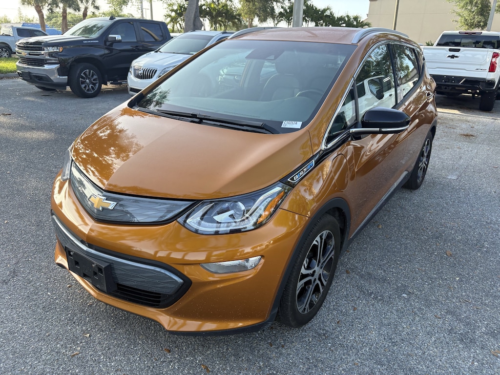 Home of the As-Traded Vehicles where every scratch, ding, and dent tells a story. Instead of sending this vehicle straight to auction, we are giving you the chance to buy it first. Offered exactly as it was traded, this is a great option for budget-conscious buyers or those looking for a project vehicle. Please note, a state-required safety inspection must be completed prior to delivery, at customer expense.Recent Arrival! Orange Burst Metallic 2017 Chevrolet Bolt EV Premier Electric Motor FWD *FULLY ELECTRIC VEHICLE*, GAS SAVER, NO GAS NEEDED, 2 USB Charging-Only Ports For Rear Passengers, 3-Spoke Leather-Wrapped Steering Wheel, ABS brakes, Air Conditioning, Apple CarPlay/Android Auto, Bose Premium 7-Speaker Audio System, Driver Confidence II Package, Dual front impact airbags, Electronic Stability Control, Emergency communication system: OnStar Guidance, Exterior Parking Camera Rear, Following Distance Indicator, Forward Collision Alert, Front Pedestrian Braking, Fully automatic headlights, Heated Driver & Front Passenger Seats, Heated Steering Wheel, Infotainment Package, IntelliBeam Automatic High-Beam Headlamps, Lane Change Alert w/Side Blind Zone Alert, Lane Keep Assist w/Lane Departure Warning, Low Speed Forward Automatic Braking, Low tire pressure warning, Occupant sensing airbag, Panic alarm, Power steering, Power windows, Preferred Equipment Group 2LZ, Rear Cargo Double Floor Storage, Rear Cross-Traffic Alert, Rear Parking Assist, Remote keyless entry, Wheels: 17" Ultra-Bright Machined Aluminum, Wireless Charging For Devices.128/110 City/Highway MPGAwards:* JD Power Automotive Performance, Execution and Layout (APEAL) Study * Car and Driver 10 Best Cars * Motor Trend Car of the Year * 2017 IIHS Top Safety Pick with optional front crash prevention * Green Car Journal 2017 Green Car of the Year * NACTOY 2017 North American Car of the Year * 2017 KBB.com 10 Most Awarded BrandsBased on 2017 EPA mileage ratings. Use for comparison purposes only. Your mileage will vary depending on how you drive and maintain your vehicle, driving conditions and other factors.Car and Driver, January 2017.Pricing excludes tax, tag, title and pre-delivery service fee of $999 and private tag agency fee of $24.40. *See below for details.