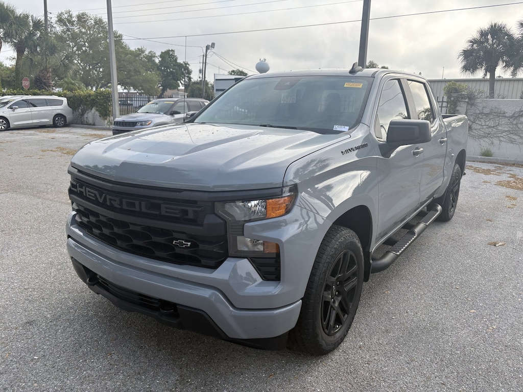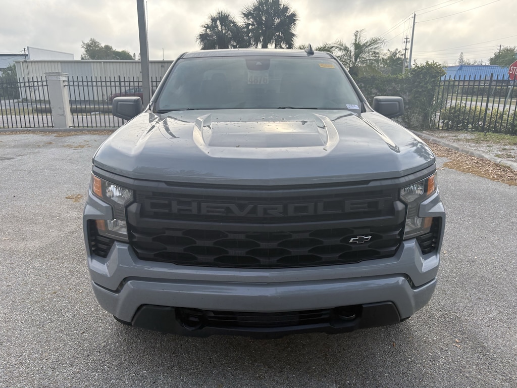 The CarBravo Used Certification Program is our way of bringing trust and transparency to our preowned buying experience. Every CarBravo vehicle is thoroughly inspected and reconditioned to meet General Motors high standards, ensuring quality and reliability. Each certified vehicle includes a limited warranty, roadside assistance, and a detailed vehicle history report. Designed for convenience and peace of mind.Recent Arrival! CARFAX One-Owner. Slate Gray Metallic 2024 Chevrolet Silverado 1500 Custom 1CX 2.7L I4 Turbocharged DOHC 16V LEV3-SULEV30 310hp RWD * GREAT COLOR, WITH BLACK OUT PACKAGE *, * FACTORY RUNNING BOARDS *, 10-Way Power Driver Seat w/Lumbar, 120-Volt Bed Mounted Power Outlet, 120-Volt Interior Power Outlet, 3.5" Monochromatic Display Driver Info Center, 4" Black Round Assist Steps (LPO), 6-Speaker Audio System, Black Name Plates (LPO), Bluetooth® For Phone, Chevrolet Connected Access Capable, Color-Keyed Carpeting Floor Covering, Custom Convenience Package, Custom Value Package, Dark Essentials Package (LPO), Deep-Tinted Glass, Dual Rear USB Ports (Charge Only), Electric Rear-Window Defogger, Electrical Steering Column Lock, Electronic Cruise Control, EZ Lift Power Lock & Release Tailgate, Following Distance Indicator, Forward Collision Alert, Front Frame-Mounted Black Recovery Hooks, Front Rubberized Vinyl Floor Mats, HD Rear Vision Camera, High Capacity Suspension Package, Hitch Guidance, LED Cargo Area Lighting, Manual Tilt Wheel Steering Column, OnStar & Chevrolet Connected Services Capable, Power Front Windows w/Driver Express Up/Down, Power Front Windows w/Passenger Express Down, Power Rear Windows w/Express Down, Preferred Equipment Group 1CX, Rear 60/40 Folding Bench Seat (Folds Up), Rear Rubberized-Vinyl Floor Mats, Rear step bumper, Remote Keyless Entry, Remote Vehicle Starter System, Security system, SiriusXM Radio, Standard Tailgate, Theft Deterrent System (Unauthorized Entry), Trailering Package, TurboMax Blackout Package, Wheels: 20" x 9" High Gloss Black Painted Alum, Wi-Fi Hot Spot Capable.Priced below KBB Fair Purchase Price! Odometer is 2237 miles below market average!Pricing excludes tax, tag, title and pre-delivery service fee of $999 and private tag agency fee of $24.40. *See below for details.