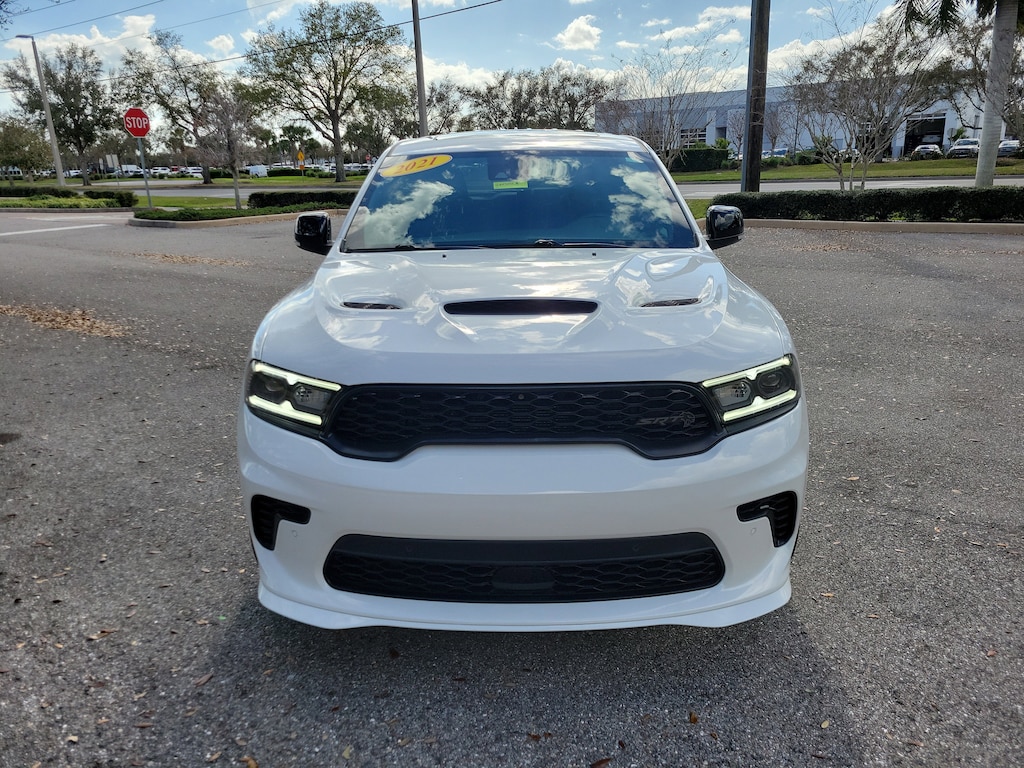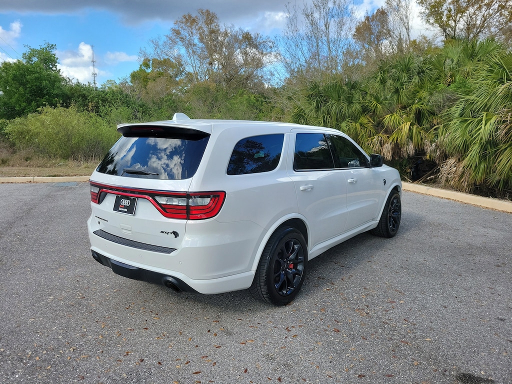 Pricing excludes tax, tag, title and pre-delivery service fee of $999 and private tag agency fee of $24.40. *See below for details..Carfax 1 Owner!..Wow this Well Maintained, All Wheel Drive Durango SRT Hellcat includes Technology Group, Black Package & Tow Package with a 6.2L 710 HP, Supercharged V8..8 Speed Automatic Transmission..SRT Red Brembo Perferated Brakes with 2-Piece Front Rotors..4-Wheel Traction Control..Adaptive Damping Suspension..Electronic Limited Slip Differential Rear Axle..High Performance Exhaust..Performance Tuned Steering..Configurable Drive Mode..ParkView Rear Back Up Camera..ParkSense Front and Rear Park Assist with Stop..Power Liftgate..Remote Start System..Remote Proximity Keyless Entry..Steering Wheel Mounted Paddle Shifters..Automatic HighBeam Headlamp Control..BlindSpot and Cross Path Detection..Adaptive Cruise Control with Stop..Advanced Brake Assist..Full Speed Forward Collision Warning Plus..Lane Departure Warning Plus..Gloss Black Exterior Mirrors..Gray Metallic Badges..Satin Black Dodge Tail Lamp Badge..20" x 10" Lights Out Aluminum Alloy Wheels..19 Harman Kardon Amped Speakers with Subwoofer, 825 Watt Amplifier..Uconnect 5 Navigation with 10.1" Touchscreen..Apple CarPlay..Google Android Auto..SRT Performance Pages..SiriusXM..Power Adjustable Heated/Ventilated High-Performance Laguna Leather Seats..BiFunction LED Projector Headlamps..LED Aux Low Beam and Turn Signal..LED Daytime Running Headlamps..Performance Hood..Performance Lower Splitter..Power Sunroof..Illuminated Rear Cupholders..12 Volt Auxillary Power Outlet in Console..1-USB Charging Port in Console..AWD..7 Passenger Seating..Class IV Receiver Hitch..Trailer Brake Control..All power equipment and more..All pre-owned cars regardless of make and model are driven and evaluated by our highly qualified service personnel. Call Our Sales Team Now at 941-922-0000 for More Info, a Test Drive Appointment or to have a Custom Video Sent to you on this Vehicle. Fast Out Of State Shipping Available..What the reviews say..A three-row SUV with 700-plus horses, as quick as a 797-hp Hellcat Challenger, surprisingly deft handling for its size. The Durango SRT Hellcat is an incredibly powerful and shockingly entertaining three-row family hauler. With three rows of seats and 710 horsepower on tap, the 2021 Dodge Durango SRT Hellcat is a rollercoaster ride the entire family can enjoyor fear. As its name suggests, there's an almighty, unholy supercharged V-8 engine hidden within its intimidating bodywork, and its standard all-wheel-drive system is only too eager to assist its breathtaking acceleration. The howl of its supercharger and the rumble of its exhaust can go from background music to auditory assault at the press of a pedal. And when Dodge's supreme SUV isn't making its passengers squirm and regret their lunches, it can tow up to 8700 pounds and haul plenty of groceries. The 2021 Durango SRT Hellcat might seem like an excessive and expensive mid-size SUV, but not to those who appreciate its outrageousness. There's a monster of an engine hiding underneath the bulging and vented hood. It's a supercharged 6.2-liter V-8 that summons 710 horsepower and 645 lb-ft of torque. This earth-shattering power is directed to all four wheels through an eight-speed automatic transmission. The Hellcat engine exhales through an enhanced exhaust system that amplifies its thunder. The version we tested launched to 60 mph in just 3.6 seconds (matching a 797-hp Challenger SRT Hellcat Redeye we tested) and cleared the quarter-mile in 12.0 seconds at 115 mph. Plus, it's capable of towing 8700 pounds, which is more than any other mid-size crossover SUV. The top-dog Durango also employs a powerful Brembo brake system. Inside, the Hellcat Durango has a driver-centric layout that looks similar to the dashboard on the Dodge Charger and Challenger. The Durango provides comfortable accommodations and a foldaway third row.