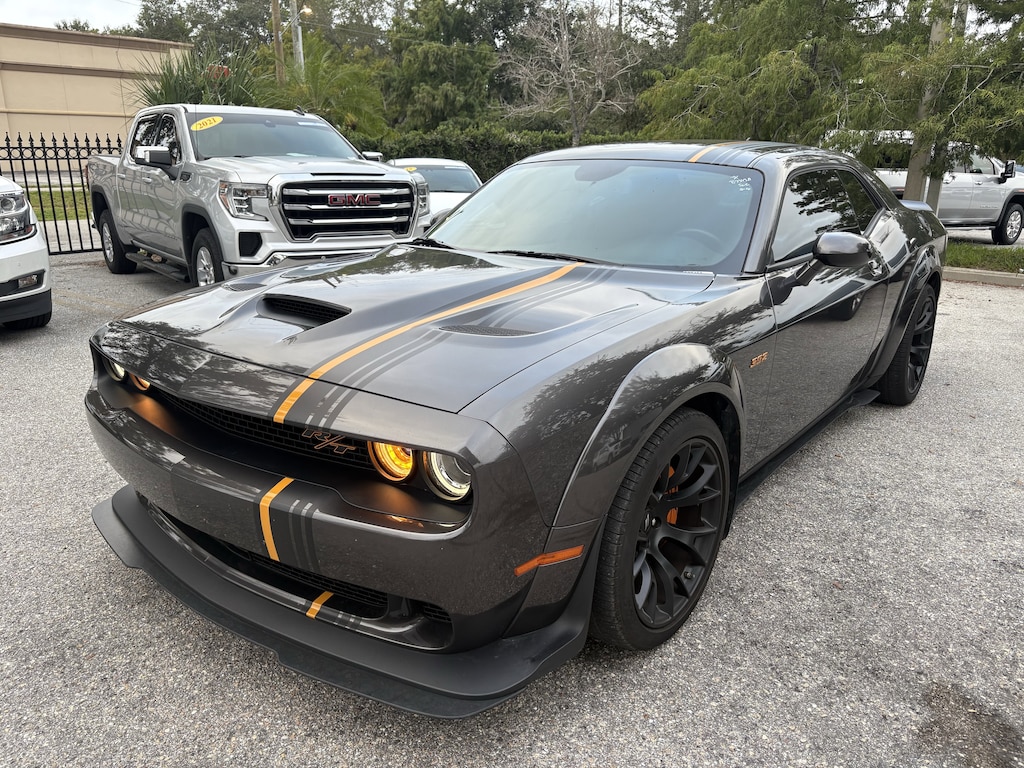 Recent Arrival! Granite Crystal Metallic Clearcoat 2022 Dodge Challenger R/T Scat Pack Widebody 24n Hemi Orange SRT HEMI 6.4L V8 MDS RWD WOW!!!!!!!!, WOW!!!!!!, WOW!!!!!!!!, 392 Fender Badge, 392 IP Badge, 506 Watt Amplifier, 9 Amplified Speakers w/Subwoofer, Adaptive Damping Suspension, Alpine Audio Group w/Subwoofer, Apple CarPlay/Android Auto, Auto High Beam Headlamp Control, Black Stripe w/Orange Tracer, Blind Spot & Cross Path Detection, Body Color Exterior Mirrors, Brake assist, Brembo 6-Pot Fixed Front Caliper Brakes, Door Trim Panel w/Ambient Lighting, Driver Convenience Group, Exterior Mirrors w/Heating Element, Flat-Bottom Steering Wheel, Four wheel independent suspension, Fully automatic headlights, Gloss Black I/P Cluster Trim Rings, Heated Front Seats, Heated Steering Wheel, HEMI Orange Badges, HEMI Orange Package, High-Intensity Discharge Headlamps, Integrated Voice Command w/Bluetooth, Leather Shift Knob, Media Hub (2 USB, AUX), Nappa/Alcantara Seats // Logo, Orange Brake Calipers, Orange Interior Accent Stitch, ParkView Rear Back-Up Camera, Performance Shift Indicator, Plus Package, Power driver seat, Power Multi-Function Foldaway Mirrors, Power Tilt/Telescope Steering Column, Premium-Stitched Dash Panel, Quick Order Package 24N R/T Scat Pack Widebody, R/T Grille Badge, Radio: Uconnect 4C w/8.4" Display, Radio/Driver Seat/Mirrors Memory, Rain Sensitive Windshield Wipers, Rhombi 2-Pc Wheel Center Cap, Satin Black Dodge Tail Lamp Badge, Security system, Spoiler, Surround Sound, Technology Group, Ventilated Front Seats, Wheels: 20" x 11.0" Carbon Black Warp Speed, Wheels: 20" x 11.0" Devil's Rim Granite, White Face Instrument Cluster, Widebody Competition Suspension, Widebody Fender Flares.Odometer is 10308 miles below market average!Pricing excludes tax, tag, title and pre-delivery service fee of $999 and private tag agency fee of $24.40. *See below for details.