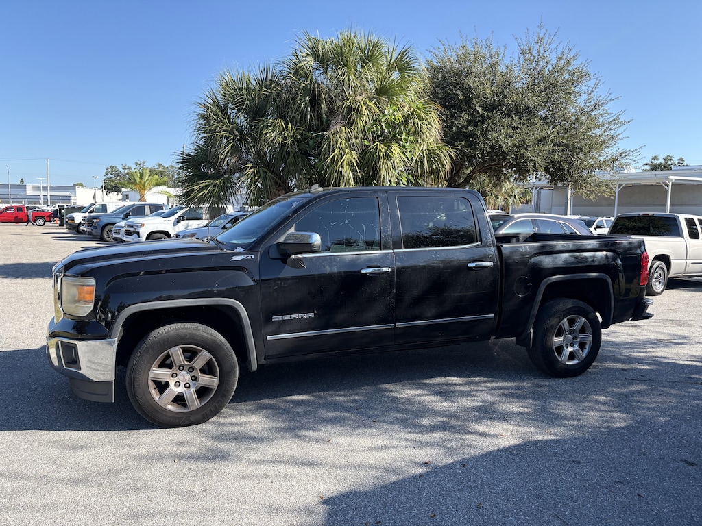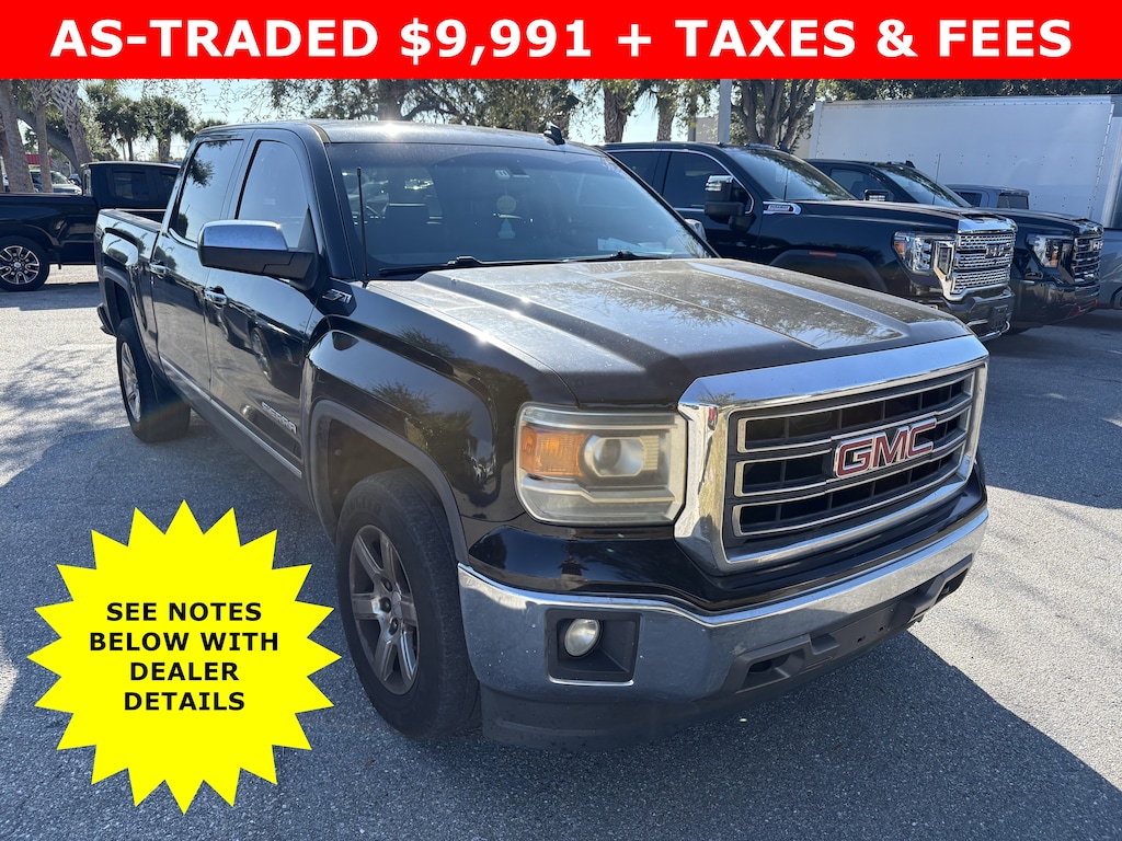 Recent Arrival! CARFAX One-Owner. Onyx Black 2014 GMC Sierra 1500 SLT 4SA EcoTec3 5.3L V8 Flex Fuel RWD *PERFECT SEANSONAL WORK TRUCK*, *Air Conditioning is not working*, **WONT LAST LING AT THIS VALUE**, 110-Volt AC Power Outlet, 150 Amp Alternator, 4.2" Diagonal Color Display Driver Info Center, Alloy wheels, Auto-Dimming Inside Rear-View Mirror, Auxiliary External Transmission Oil Cooler, Chrome Bodyside Moldings, Chrome Door Handles, Chrome Grille Surround, Color-Keyed Carpeting w/Rubberized Vinyl Floor Mats, Deep-Tinted Glass, Driver & Front Passenger Illuminated Vanity Mirrors, Dual-Zone Automatic Climate Control, Electric Rear-Window Defogger, EZ Lift & Lower Tailgate, Front Frame-Mounted Black Recovery Hooks, Front Halogen Fog Lamps, Heavy Duty Suspension, Heavy-Duty Rear Locking Differential, Hill Descent Control, Leather Wrapped Steering Wheel w/Cruise Controls, LED Cargo Box Lighting, Manual Tilt Wheel Steering Column, Navigation System, Off-Road Suspension Package, OnStar 6 Months Directions & Connections Plan, Power Adjustable Pedals, Power Folding & Adjustable Heated Outside Mirrors, Power Windows w/Driver Express Up, Preferred Equipment Group 4SA, Rear 60/40 Folding Bench Seat (Folds Up), Rear Vision Camera w/Dynamic Guide Lines, Rear Wheelhouse Liners, Remote Keyless Entry, Remote Vehicle Starter System, Single Slot CD/MP3 Player, Steering Wheel Audio Controls, Theft Deterrent System (Unauthorized Entry), Trailering Equipment, Universal Home Remote.