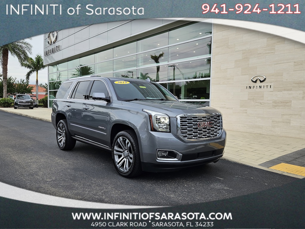 Pricing excludes tax, tag, title and pre-delivery service fee of $999 and private tag agency fee of $24.40. *See below for details..Wow this 4 Wheel Drive, Yukon Denali is Loaded with Options including the Denali Ultimate Package, Open Road Package & Enhanced Driver Alert Package with Side Blind Zone Alert..Rear Cross Traffic Alert..Backup Camera..Head-Up Display..Lane Keep Assist..Lane Departure Warning..Front and Rear Park Assist..Automatic High Beam..Automatic Emergency Braking..Forward Collision Alert..Safety Alert Seat..Advanced Adaptive Cruise Control..Magnetic Ride Control..4-Wheel Disc & 4-Wheel VAC Power Antilock Brakes..Automatic Emergency Braking..Rear Seat Blu-Ray/DVD Entertainment System..Theft-Deterrent Alarm System..Vehicle Inclination Sensor Vehicle Interior Movement Sensor..Power Tilt-Sliding Sunroof with Express-Open/Close..Power Retractable Assist Steps with Perimeter Lighting..6.2L EcoTec3 V8 with 420 Horsepower..10 Speed Automatic Transmission..Factory Navigation..Apple CarPlay and Android Auto..Bose Centerpoint Surround Sound Audio System..5-USB Ports..Bluetooth for Phone and Audio..Aux Input..Satellite Radio..Wireless Phone Charging..Wi-Fi Hotspot..Power Adjustable, Heated/Ventilated Leather Seats with Power Release 2nd Row Bucket seats and Power Folding 3rd Row Seat..22" Alloy Wheels..3-Zone Climate Control..Magnetic Ride Control..Push Button Start..Tow Package..HD Cooling..Roof Rails..All power equipment and much more...All pre-owned cars regardless of make and model are driven and evaluated by our highly qualified service personnel. We invite you to come see our brand new state of the art dealership and take a test drive with one of our highly trained Infiniti Specialists. You will be glad you did. Call Our Sales at 941-924-1211 for more info or to have a custom video emailed to you..Fast Out Of State Delivery Available..What the reviews say..There aren't many body-on-frame SUVs being made these days, but the 2019 GMC Yukon happens to be one of them. Like its corporate sibling, the Chevy Tahoe, the Yukon offers ruggedness and high towing capacity that only this kind of vehicle can deliver. A V8 engine comes standard, and available four-wheel drive with low-range gearing provides traction when you need it most. Equipped with the 6.2-liter V8 and adaptive suspension, the Yukon accelerates and handles impressively. The optional 6.2-liter V8 sounds healthy, and power builds all the way to the redline. The Yukon is quick for the class with a 0-60 mph time of 6.2 seconds. The engine is definitely strong. The optional adaptive suspension does a good job of resisting body roll when cornering. The 10-speed automatic performs well, executing rapid and smooth shifts without hesitation. The comfortable front seats and a quiet cabin are the highlights. The front- and second-row buckets are accommodating and nicely padded. They're certainly comfortable enough for long drives. The three-zone system is easy to manage thanks to straightforward controls. Air blows strong and very cold or very hot. Android Auto and Apple CarPlay are standard and connect quickly. We appreciate that the voice controls for the truck and your smartphone are both accessible. If you're opting for the GMC Yukon over the nearly identical Chevy Tahoe, you might as well skip right to the Denali. You get a much better powertrain and more sophisticated suspension, nicer interior materials, and all the bells and whistles.