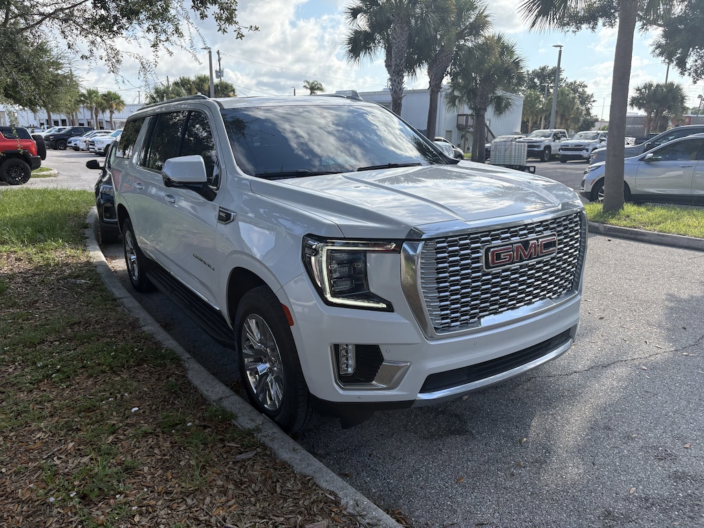 CARFAX One-Owner. White Frost Tricoat 2021 GMC Yukon XL Denali EcoTec3 6.2L V8 RWD **ONE OWNER**, COUPLE BUMPER SCRATCHES, OTHERWISE VERY CLEAN YUKON, 12-Way Power Seat Adjusters, 15" Diagonal Multi-Color Head-Up Display, 2 Presets For Outside Rearview Mirrors, 3rd Row 60/40 Power-Folding Split-Bench Seat, 4-Wheel Disc Brakes, Adaptive suspension, Air Conditioning, Apple CarPlay/Android Auto, Auto-leveling suspension, Automatic temperature control, Bose 14-Speaker Surround w/CenterPoint, Brake assist, Bright Front & Rear Door Sill Plates, Chrome Door Handles w/Body-Color Strip, Dual Exhaust System, Dual-Pane Panoramic Power Sunroof, Following Distance Indicator, Forward Collision Alert, Four wheel independent suspension, Front & Rear Park Assist, Front dual zone A/C, Front Pedestrian Braking, Fully automatic headlights, Galvano Bodyside Moldings, Garage door transmitter, Hands-Free Power Programmable Rear Liftgate, HD Surround Vision, Heads-Up Display, Heated & Ventilated Driver & Front Passenger Seats, Heated 2nd Row Outboard Position Seats, Heated Automatic Steering Wheel, Heated Driver & Front Passenger Seats, Inside Rear-View Auto-Dimming Mirror, Lane Change Alert w/Side Blind Zone Alert, Lane Keep Assist w/Lane Departure Warning, Magnetic Ride Control Suspension, Memory seat, Navigation System, Not Equipped w/Automatic Stop/Start, Outside Heated Power-Adjustable Mirrors, Power Liftgate, Power Release 2nd Row Bucket Seats, Power Tilt & Telescopic Steering Column, Preferred Equipment Group 5SA, Rear air conditioning, Rear Cross Traffic Alert, Rear Pedestrian Alert, Rear Seat Media System, Safety Alert Seat, Security system, Universal Home Remote, Wheels: 20" x 9" 6-Spoke Polished Aluminum.