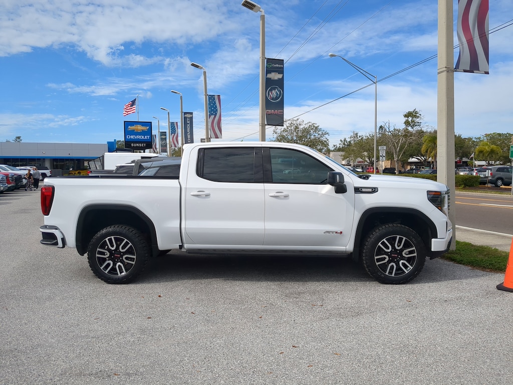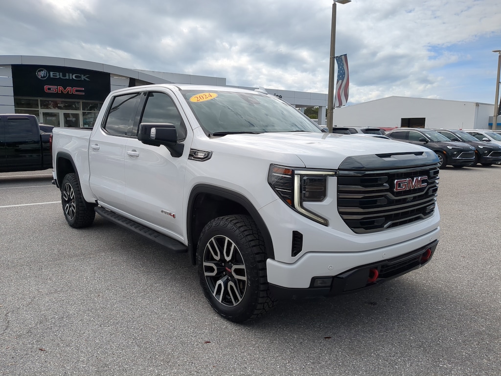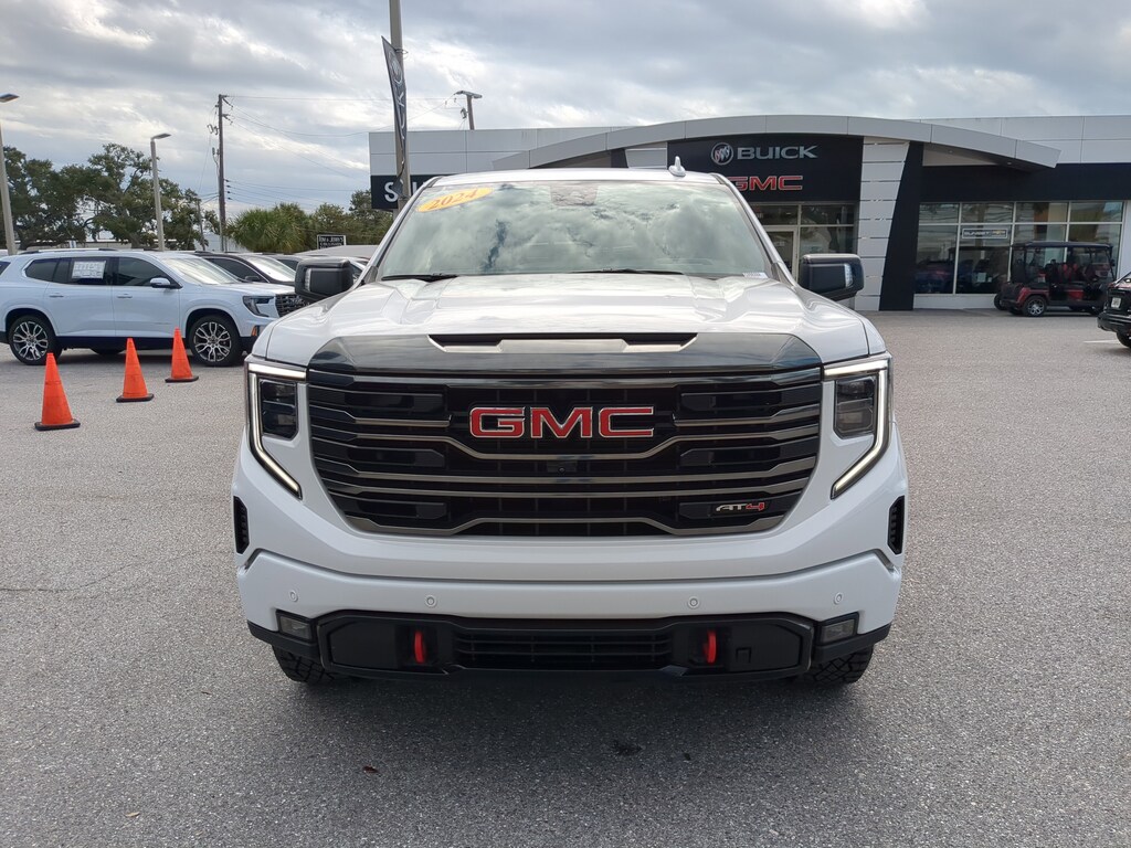 The CarBravo Used Certification Program is our way of bringing trust and transparency to our preowned buying experience. Every CarBravo vehicle is thoroughly inspected and reconditioned to meet General Motors high standards, ensuring quality and reliability. Each certified vehicle includes a limited warranty, roadside assistance, and a detailed vehicle history report. Designed for convenience and peace of mind.CARFAX One-Owner. Summit White 2024 GMC Sierra 1500 AT4 4SB 3.0L I6 4WD **HARD TO FIND AND READY TO GO**, 10-Way Power Driver Seat Adjuster w/Lumbar, 10-Way Power Passenger Seat Adjuster w/Lumbar, 120-Volt Bed Mounted Power Outlet, 120-Volt Interior Power Outlet, 2 Charge/Data USB Ports Inside Center Console, 2 Type-C Charge-Only Rear USB Ports, 2 USB Ports, 220 Amp Alternator, AT4 Preferred Package, AT4 Premium Package, Auto-Locking Rear Differential, Bed View Camera, Black Chrome Header & Grille Insert Bars, Brake assist, Color-Keyed Carpeting Floor Covering, Deep-Tinted Glass, Electric Rear-Window Defogger, Floor-Mounted Center Console, Front Prem Floor Liners w/Removable Carpet Insert, Front Rain-Sensing Wipers, Fully automatic headlights, GMC Connected Access Capable, HD Surround Vision, Heated 2nd Row Outboard Seats, Heated Driver & Front Outboard Passenger Seating, Heavy-Duty Air Filter, Hill Descent Control, Hitch Guidance, Hitch View, In-Vehicle Trailering System App, Integrated Trailer Brake Controller, Keyless Open & Start, LED Cargo Area Lighting, Multicolor 15" Diagonal Head-Up Display, Navigation System, Off-Road High Clearance Step (LPO), OnStar & GMC Connected Services Capable, Perimeter Lighting, Power Door Locks, Power Front Passenger Windows w/Express Up/Down, Power Front Windows w/Driver Express Up/Down, Power Rake & Telescoping Steering Column, Power Rear Windows w/Express Down, Power Sliding Rear Window w/Rear Defogger, Preferred Equipment Group 4SB, Premium Bose 7-Speaker Sound System, Push Button Start, Rain sensing wipers, Rear Camera Mirror, Rear Cross Traffic Braking, Rear Pedestrian Detection, Rear Prem Floor Liners w/Removable Carpet Insert, Rear Wheelhouse Liners, Red Recovery Hooks, Remote Vehicle Starter System, SiriusXM w/360L, Split folding rear seat, Spray-On Pickup Bedliner w/AT4 Logo, Steering Wheel Audio Controls, Technology Package, Theft Deterrent System (Unauthorized Entry), Trailer Camera Provisions, Trailer Side Blind Zone Alert, Trailering Package, Ultrasonic Front & Rear Park Assist, Universal Home Remote, Ventilated Driver & Front Passenger Seats, Wheels: 20" x 9" Machined Aluminum, Wi-Fi Hotspot Capable, Wireless Apple CarPlay/Wireless Android Auto, Wireless Charging.Pricing excludes tax, tag, title and pre-delivery service fee of $999 and private tag agency fee of $24.40. *See below for details.