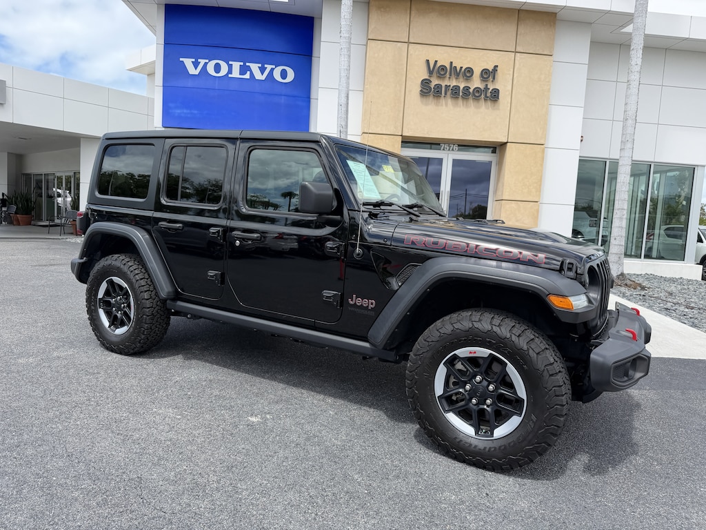 Pricing excludes tax, tag, title and pre-delivery service fee of $999 and private tag agency fee of $24.40. *See below for details..Carfax 1 Owner!..Wow this 4 Wheel Drive Jeep Wrangler Unlimited Rubicon 4Dr includes Preferred Package 22R, Cold Weather Group, Heated Leather Bucket Seats, 8.4" Radio & Premium Audio Group with a Turbocharged, 2.0L 270 HP 4 Cylinder..8 Speed Automatic Transmission..Black 3-Piece Hardtop..17" Alloy Wheels..Off-Road Plus Mode..ParkView Rear BackUp Camer..4:1 RockTrac Heavy Duty Part Time 4WD System..TruLok Front and Rear Axles..Front Disconnecting Stabilizer Bar..Rock Protection Sill Rails..Heavy Duty 4Wheel Disc AntiLock Brakes..Electronic Stability Control..Electronic Roll Mitigation..Trailer Sway Damping..Hill Start Assist..Traction Control..Remote Proximity Keyless Entry..8.4" Radio and Premium Audio Group..Alpine Premium Audio System..Uconnect 4C Navigation with 8.4" Display..GPS Navigation..SiriusXM..4G LTE WiFi Hot Spot..Continental Tire Pressure Monitoring Sensor..Apple CarPlay/Google Android Auto..Media Hub with 2 Charge Only USB Ports..Integrated Voice Command with Bluetooth..Ambient LED Interior Lighting..115 Volt Auxiliary Power Outlet..12 Volt Rear Auxiliary Power Outlet..Power Front Windows with 1-Touch Down..Air Conditioning with Automatic Temperature Control..Speed Sensitive Power Locks..Leather Wrapped Steering Wheel..Steering Wheel Mounted Audio Controls..Rear 60/40 Folding Seat..Red Tow Hooks..2-Front and 1-Rear Tow Hooks..Power Heated Mirrors..Front Fog Lamps..Automatic Headlamps..Remote Engine Start..LED Taillamps and more..All pre-owned cars regardless of make and model are driven and evaluated by our highly qualified service personnel. We invite you to come see our brand new state of the art dealership and take a test drive with one of our highly trained Volvo Specialists. You will be glad you did. Call Our Sales Team at 941-924-1212 for more info or to have a custom video emailed to you..Fast Out Of State Delivery Available..What the reviews say..The 2021 Wrangler oozes personality. The Wrangler has just enough of a modern vibe to make it feel nicely up-to-date. How does the Wrangler drive? There's no doubt the Wrangler is a beast when it comes to off-road prowess. That's especially the case with the Rubicon trim and its 33-inch tires and lockable differentials. Just hearing the name Jeep conjures images of off-road adventure, and the 2021 Wrangler is likely the vehicle most people think of in that scenario. Its retro design harkens back to the World War II-era military vehicle, but the modern-day Wrangler offers an array of creature comforts and a range of sophisticated powertrains that the American GI's of WWII would have considered science fiction. A turbocharged four-cylinder engine is optional and teams up with an electric motor to provide additional low-end power. Hows the tech? The Jeep Wrangler is surprisingly modern when it comes to infotainment and smartphone integration. The optional 8.4-inch Uconnect system offers sharp graphics, quick responses, and one of the best infotainment interfaces in the industry. Plenty of charging ports (USB and USB-C) are available. Apple CarPlay and Android Auto come standard with the Wrangler's 7- and 8.4-inch touchscreens. The 2021 Jeep Wrangler SUV is an iconic off-roader that endures because its capable and cool. Why mess with success? The Wrangler (still) looks great. Few vehicles are as distinctive as the Jeep Wrangler. This is one of the few no-compromise off-road vehicles left. And it happens to be an iconic convertible! You can go anywhere with one of these.