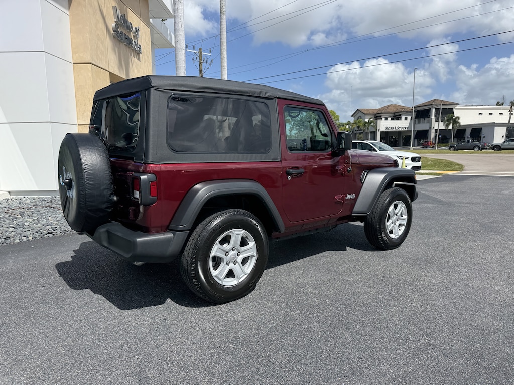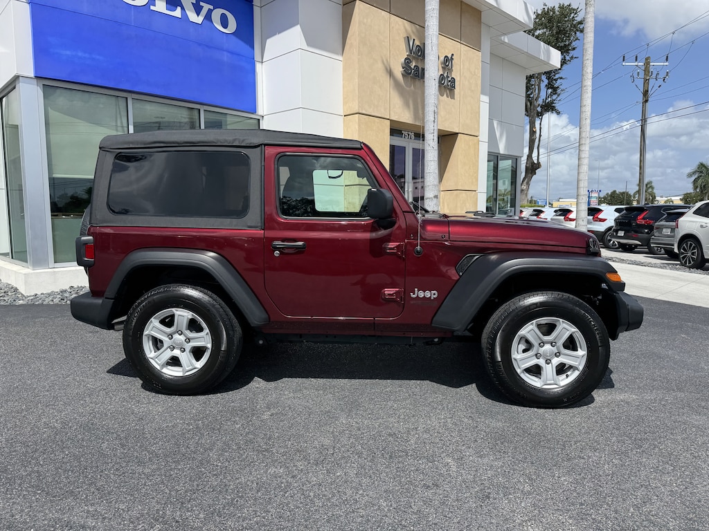 Pricing excludes tax, tag, title and pre-delivery service fee of $999 and private tag agency fee of $24.40. *See below for details..Only 18,752 Miles!..Carfax 1 Owner!..Wow this 4 Wheel Drive Jeep Wrangler Sport includes Preferred Package 23S & Technology Group with a 3.6L 285 HP V6..6 Speed Manual Transmission..Backup Camera..7.0" Touchscreen Display..Air Conditioning with Auto Temperature Control..Air Filtering..Apple CarPlay/Google Android Auto..Cluster 7.0" TFT Color Display..GPS Antenna Input..Integrated Center Stack Radio..Uconnect 4 with 7" Display..SiriusXM Satellite Radio..USB Host Flip..Bluetooth..Sunrider Soft-Top..Automatic Headlamps..Deep Tint Sunscreen Windows..Front 1-Touch Down Power Windows..Leather Wrapped Steering Wheel..Power Heated Mirrors..Remote Keyless Entry..Security Alarm..Speed Sensitive Power Locks..Sun Visors with Illuminated Vanity Mirrors..17" x 7.5" Tech Silver Aluminum Wheels..Uconnect..Push-Button Start..USB/Aux Inputs..Command Trac Part Time 4WD System..3.45 Overall Top Gear Ratio..Fuel Tank Skid Plate Shield..Transfer Case Skid Plate Shield..Transmission Skid Plate..Anti Lock 4 Wheel Disc Brakes..Electronic Stability Control..Electronic Roll Mitigation..Trailer Sway Damping..Remote Engine Start and more...All pre-owned cars regardless of make and model are driven and evaluated by our highly qualified service personnel. We invite you to come see our brand new state of the art dealership and take a test drive with one of our highly trained Volvo Specialists. You will be glad you did. Call Our Sales Team at 941-924-1212 for more info or to have a custom video emailed to you..Fast Out Of State Delivery Available..What the reviews say..The 2021 Wrangler oozes personality. The Wrangler has just enough of a modern vibe to make it feel nicely up-to-date. The Wrangler is the original go-anywhere, do-anything vehicle that still has the spirit of the original military Jeep of World War II.