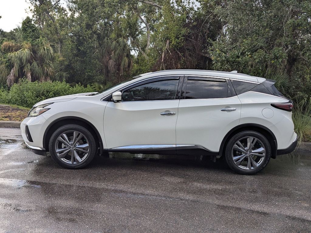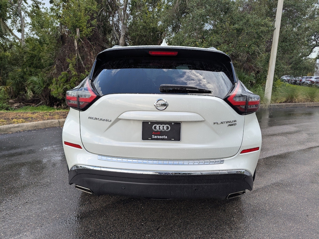 Pricing excludes tax, tag, title and pre-delivery service fee of $999 and private tag agency fee of $24.40. *See below for details..Carfax Owner!..Wow this Well Maintained, All Wheel Drive, Murano Platinum includes a 3.5L 260 HP V6..Xtronic Continuously Variable Automatic Transmission..Blind Spot Monitor with Rear Cross Traffic Alert..Automatic Emergency Braking with Pedestrian Detection..Rear Automatic Braking..Lane Departure Warning..Intelligent Lane Intervention..High-Beam Assist..Intelligent Forward Collision Warning..Intelligent Around-View Camera..Intelligent Cruise Control..Intelligent Driver Alertness..Traffic Sign Recognition..Rear Door Alert..20" Alloy Wheels..Navigation System..Dual Zone Climate Control..7" Display..Push-Button Start..Remote Start with Intelligent Climate Control..Apple CarPlay/Android Auto..8" Color Display..Power Adjustable, Heated/Ventilated Leather Seats..Heated Steering Wheel..Bluetooth for Phone & Audio..11 Speaker Bose Audio System..Power Dual-Panel Moonroof..Satellite Radio..Siri Eyes-Free..4-USB Ports..Hands-Free Text Message Assistant..LED Headlights..LED Taillights..Roof Rails..All power equipment and much more...All pre-owned cars regardless of make and model are driven and evaluated by our highly qualified service personnel. We invite you to come see our brand new state of the art dealership and take a test drive with one of our highly trained Infiniti Specialists. You will be glad you did. Call Our Sales at 941-924-1211 for more info or to have a custom video emailed to you..Fast Out Of State Delivery Available..What the reviews say..Interior highlighted by high-quality materials and unique design. Front seats are exceptionally comfortable. The Murano excels in a number of areas that SUVs traditionally struggle with. First, its exterior design immediately stands out with a coupe-like silhouette and dramatic swooping angles. The shape helps it achieve a good fuel economy rating for the class, and its V6 engine mated to an Xtronic continuously variable automatic transmission (CVT) works better than many similar powertrains. Its greatest strength may be the seats, which are comfortable in all the right places. The Nissan Murano is best at providing a pleasant ride with features that are easy to use. We like the infotainment system because the controls are easy to understand and operate. Apple CarPlay and Android Auto come as standard equipment, and an optional Bose audio system pumps high-quality sound into the cabin. Models equipped with the Nissan Safety Shield 360 package benefit from helpful blind-spot monitoring and adaptive cruise control. Buyers who like to sit up high and occasionally need some space will find the Murano offers a stylish and trouble-free drive. How does the Murano drive? The standard 3.5-liter V6 engine packs enough power for typical daily driving, delivering good acceleration when called upon, and helped by a CVT automatic that's better than the industry average. The Murano's driving dynamics are generally positive as well. The speed-sensitive steering aids stability, and the Murano handles increased speeds around corners better than many midsize SUVs. How comfortable is the Murano? Nissan offers front and rear seats that are plush and supportive in all the right spots, providing the exact comfort you want on long drives. Dual-zone climate control is standard and has hard-working yet quiet air conditioning. You might find yourself dialing the system back. The heated and cooled seat features are powerful, though seat ventilation is only available on the top Platinum trim. Hows the interior? Labeled buttons and dials on the dashboard, instead of touch-sensitive controls, make for an intuitive user experience. There is also an available power tilt-and-telescoping wheel and a 10-way-adjustable driver's seat. The optional 11-speaker Bose audio system delivers crisp and clear music. Apple CarPlay and Android Auto are standard.