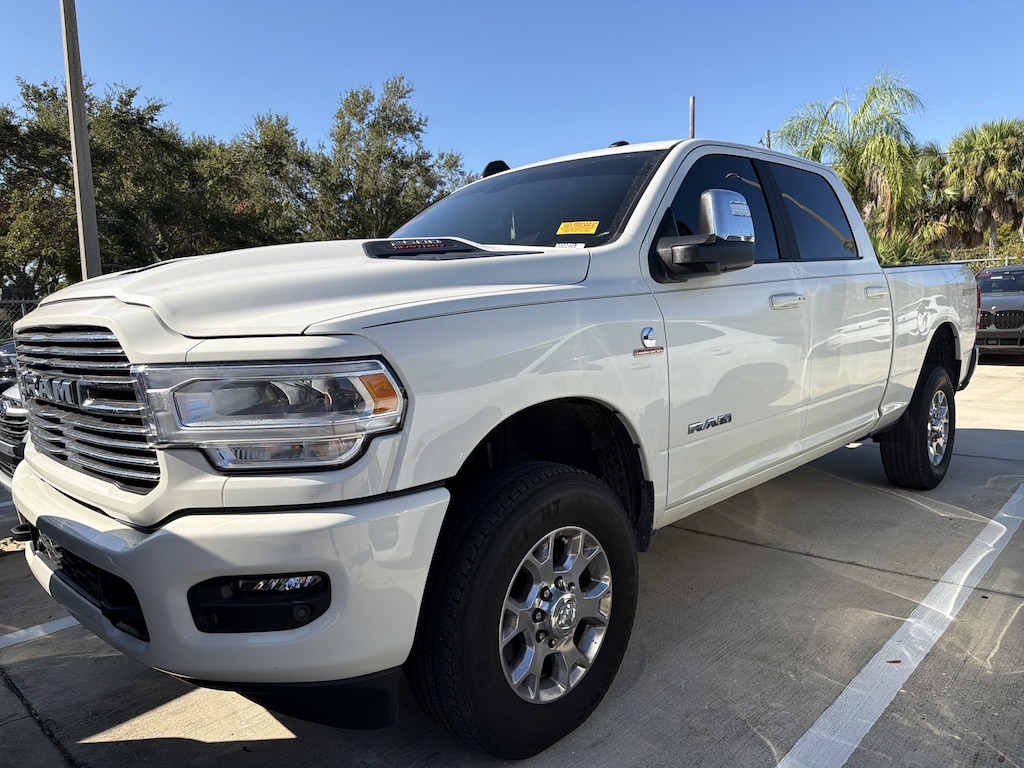Pricing excludes tax, tag, title and pre-delivery service fee of $999 and private tag agency fee of $24.40. *See below for details..Carfax 1 Owner!..Wow this 4 Wheel Drive Ram 2500 Laramie Sport 4 Dr Crew Cab Diesel includes Package 2HH, Level 1 Equipment Group and Sport Appearance Package with a 6.7L, 370 HP, 850 lb-ft of Torque, Cummins Turbo Diesel Engine..6 Speed Automatic Transmission..Uconnect 5 Navigation with 12.0" Touch Screen Display..8 Way Power Adjustable, Heated/Ventilated Leather Bucket Seats..2nd Row In Floor Storage Bins..Auto Dimming Exterior Mirror..Power Heat/Fold/Telescoping Memory Mirrors..Rear PowerSliding Window..RainSensitive Windshield Wipers..Remote Tailgate Release..Automatic Dimming Exterior Passenger Mirror..Automatic Adjusting Reverse Exterior Mirrors..Radio/Driver Seat/Mirrors/Pedals Memory..Front LED Fog Lamps..LED Reflector Headlamps..ParkSense Front and Rear Park Assist System..Power Adjustable Pedals with Memory..Blind Spot with Tag Trailer & Cross Path Detection..3.73 Axle Ratio..ParkView Rear Back Up Camera..Electronic Shift On The Fly Transfer Case..Traction Control..Trailer Sway Damping..Trailer Brake Controller..Electronic Stability Control..Dampened Tailgate..Sentry Key Theft Deterrent System..Remote Start System..Integrated Voice Command..9 Alpine Speakers with Subwoofer..Apple CarPlay..Google Android Auto..Park Sense Rear Park Assist System..Full Function Media Hub with 2-USB Plus Aux Port..A/C with Dual Zone Auto Temperature Control..Power Front Windows with 1Touch Up/Down..AutomaticDimming Rear View Mirror..Heated Steering Wheel..SteeringWheelMounted Audio Controls..18" Alloy Wheels..LED Hitch Lamp in Tailgate Handle..LED Tail Lamps..Exterior 115V AC Outlet..Fold Flat Load Floor Storage..Sport Performance Hood..Black Interior Accents..Rear Backup Alarm and more..Includes The Balance Of Factory Warranty...All pre-owned cars regardless of make and model are driven and evaluated by our highly qualified service personnel. Call Our Sales Team Now at 941-921-8080 for More Info, a Test Drive Appointment or to have a Custom Video Sent to you on this Vehicle. We invite you to come see our brand new state of the art dealership and take a test drive with one of our highly trained Volkswagen Specialists. You will be glad you did. Fast Out Of State Shipping Available..What the reviews say..The Ram 2500 has plenty of high-tech features, a stout towing capability, and one of the nicest interiors on the market for a heavy-duty truck. The Ram 2500 is one of our favorite trucks on the market, and we'd absolutely recommend a test drive. Available diesel engine generates impressive power and torque. High-tech interior with higher trim levels. Quiet and comfortable, especially for such a large and rugged vehicle. How comfortable is the 2500? Both the front and back seats of the Ram 2500 are extremely comfortable. The seats are well padded and well bolstered, and they have lots of adjustments. Soft-touch surfaces are nice for hands and elbows. How's the tech? The Ram's top-end 12.3-inch touchscreen is only rivaled by much more expensive luxury systems from Mercedes and Audi. The crisp, clear screen has an easy-to-learn organizational structure. Apple CarPlay and Android Auto smartphone integration operates seamlessly, and you'll find all the USB ports you could ask for. The Ram 2500 is a big truck with a big personality. It's one of the classiest trucks in the segment, yet it's still somehow intimidating as you see it driving down the road. Ram has done an incredible job refining the Cummins. Although heavy-duty trucks from Ford, Chevy, and GMC are also large and luxurious inside, the Ram has the best interior in the segment with luxury-car-level detailing, extreme comfort, and a clean, modern design. Every Ram HD also comes with standard acoustic glass and active noise cancellation tied into the audio system, and the result is a truck that's luxury-car quiet inside.