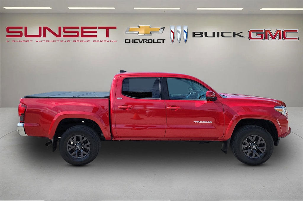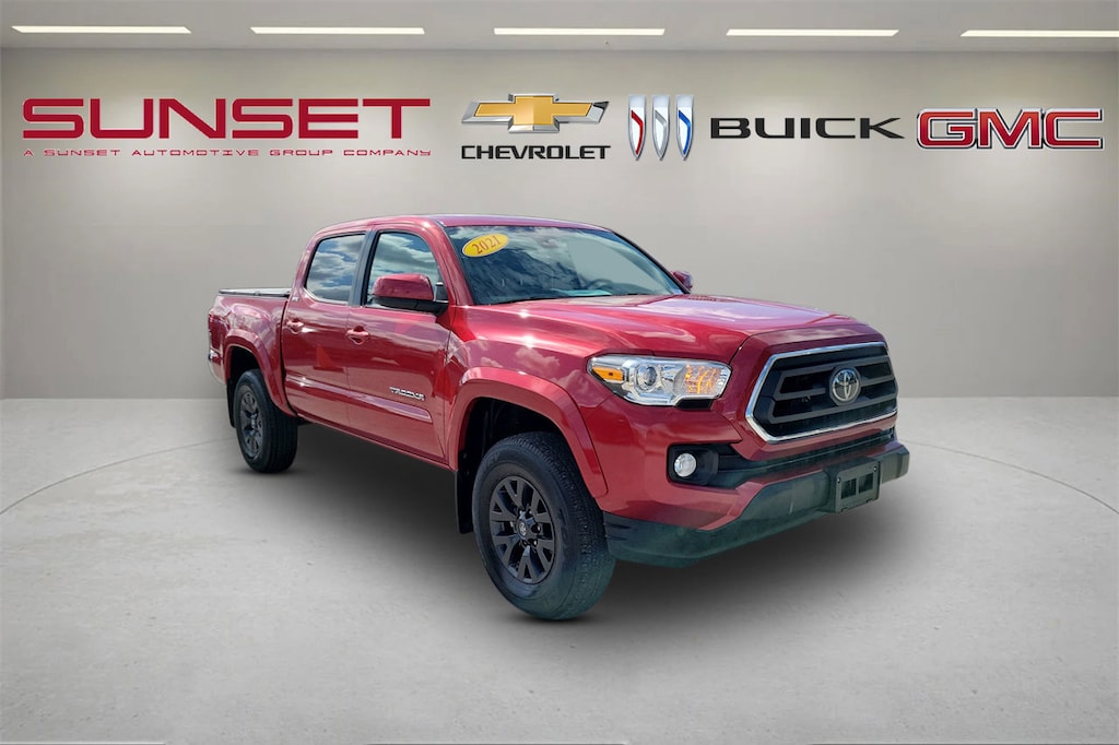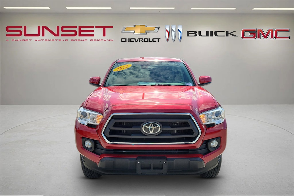 CARFAX One-Owner. Barcelona Red Metallic 2021 Toyota Tacoma SR5 V6 3.5L V6 PDI DOHC 24V LEV3-ULEV70 278hp 4WD * LIKE NEW CONDITION *, ABS brakes, Anti-whiplash front head restraints, Apple CarPlay/Android Auto, Automatic temperature control, Bar Gray Ring Chrome Front Grille, Bed Mat (TMS), Blind Spot Monitor w/Rear Cross Traffic Alert, Brake assist, Color-Keyed Overfenders, Daytime Running Lamps, Electronic Stability Control, Exterior Parking Camera Rear, Front Bucket Seats, Front Center Armrest, Front Fog Lamps, Front Seats, Hard Tri-Fold Tonneau Cover, Illuminated entry, Low tire pressure warning, Overhead console, Power driver seat, Power Sliding Rear Window w/Privacy Glass, Power windows, Radio: Premium w/AM/FM/Nav/App Suite, Remote keyless entry, Speed-sensing steering, Split folding rear seat, SR5 Package, Steering wheel mounted audio controls, Telescoping steering wheel, Tilt steering wheel, Trip computer, Variably intermittent wipers, Wheels: 16" x 7J Silver Alloy.